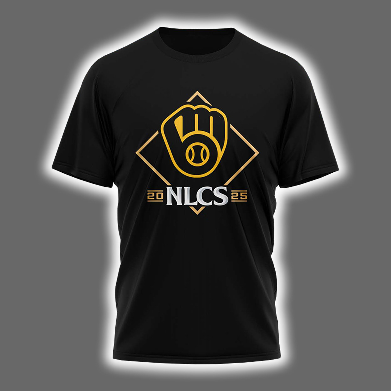 Step up to the plate in style with this shirt—a wearable homage to baseball greatness and Milwaukee pride. The front design features a clever twist on the iconic Brewers glove logo, with “NLCS” boldly stamped below and the numbers “20” and “25” flanking it like bases on a scoreboard. It’s a nod to a season worth remembering, and a team worth cheering.