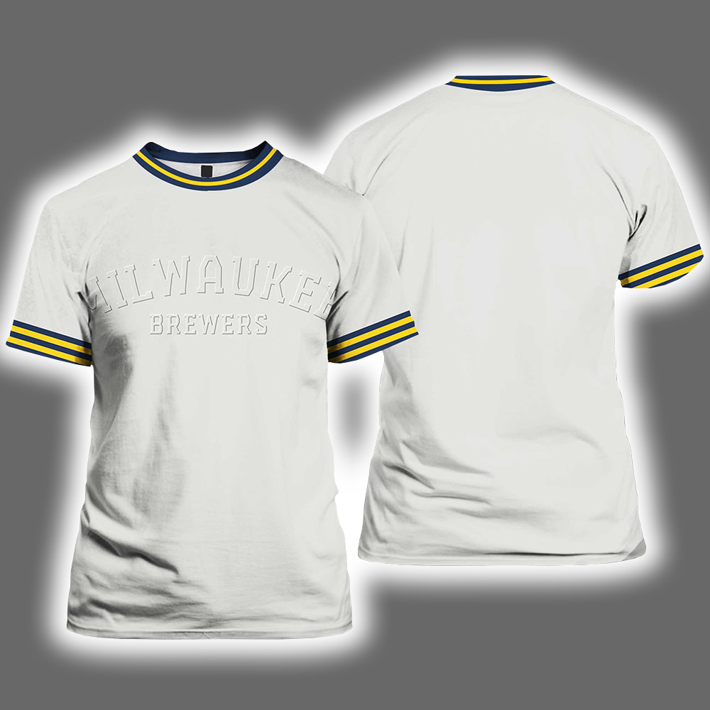 The Brewers Crew Neck Shirt 2025 Giveaway is a home run for fans who appreciate understated cool. This shirt features ribbed cuffs and a collar accented with bold blue and yellow stripes—an homage to Milwaukee’s signature colors. On the front, “MILWAUKEE BREWERS” is embossed in a raised, tone-on-tone style that’s subtle yet striking. It’s the kind of shirt that whispers team pride while still turning heads.