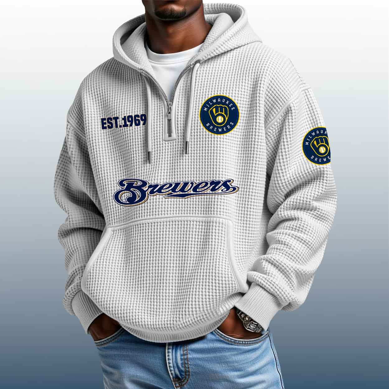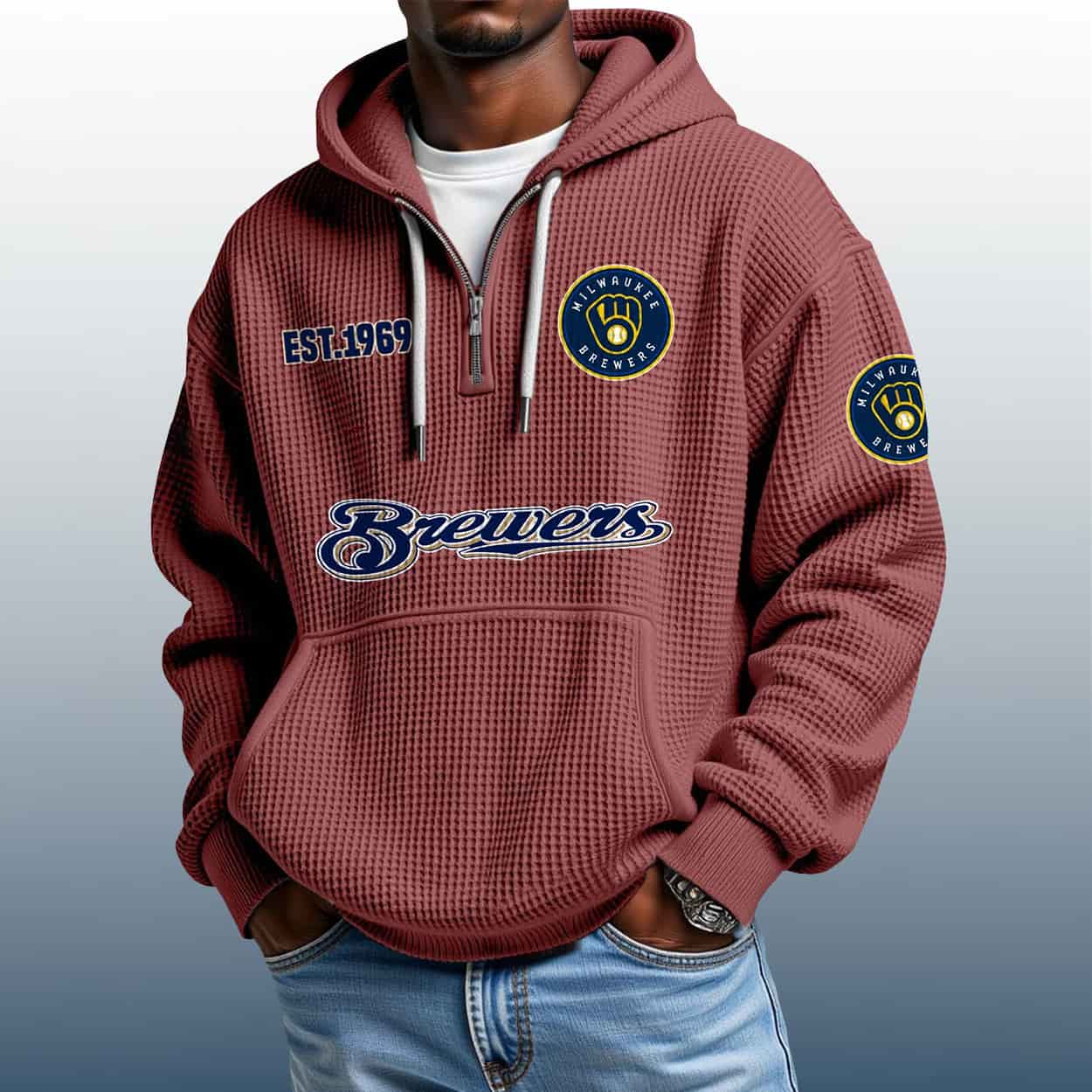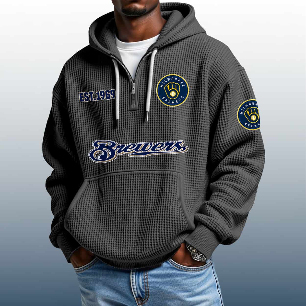 Ready to rep Milwaukee with bold style? Grab the Brewers Est 1969 Quarter Zip Waffle Hoodie and let your outfit pitch a perfect game. Your fan gear just got a major upgrade.