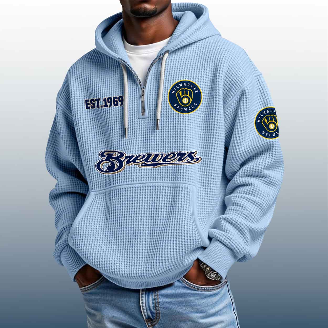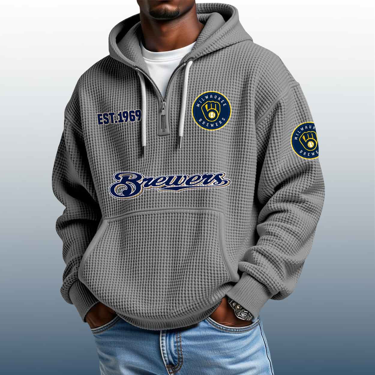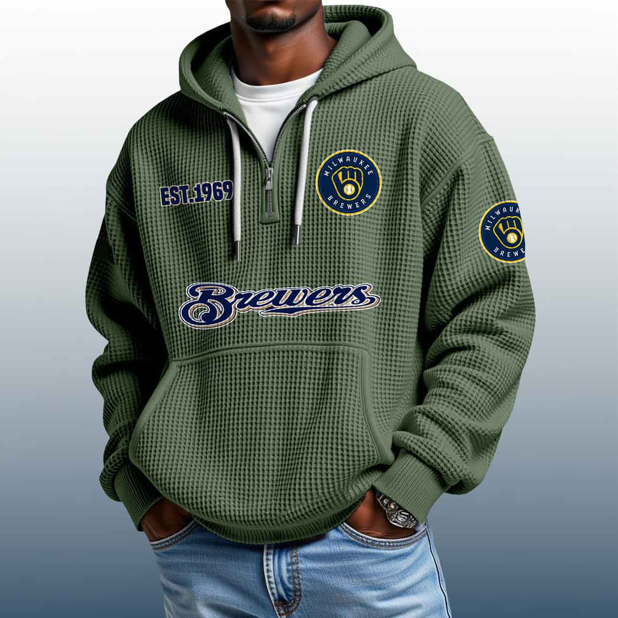 Ready to rep Milwaukee with bold style? Grab the Brewers Est 1969 Quarter Zip Waffle Hoodie and let your outfit pitch a perfect game. Your fan gear just got a major upgrade.