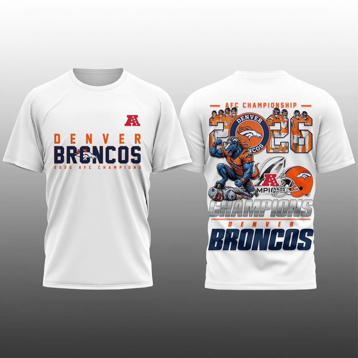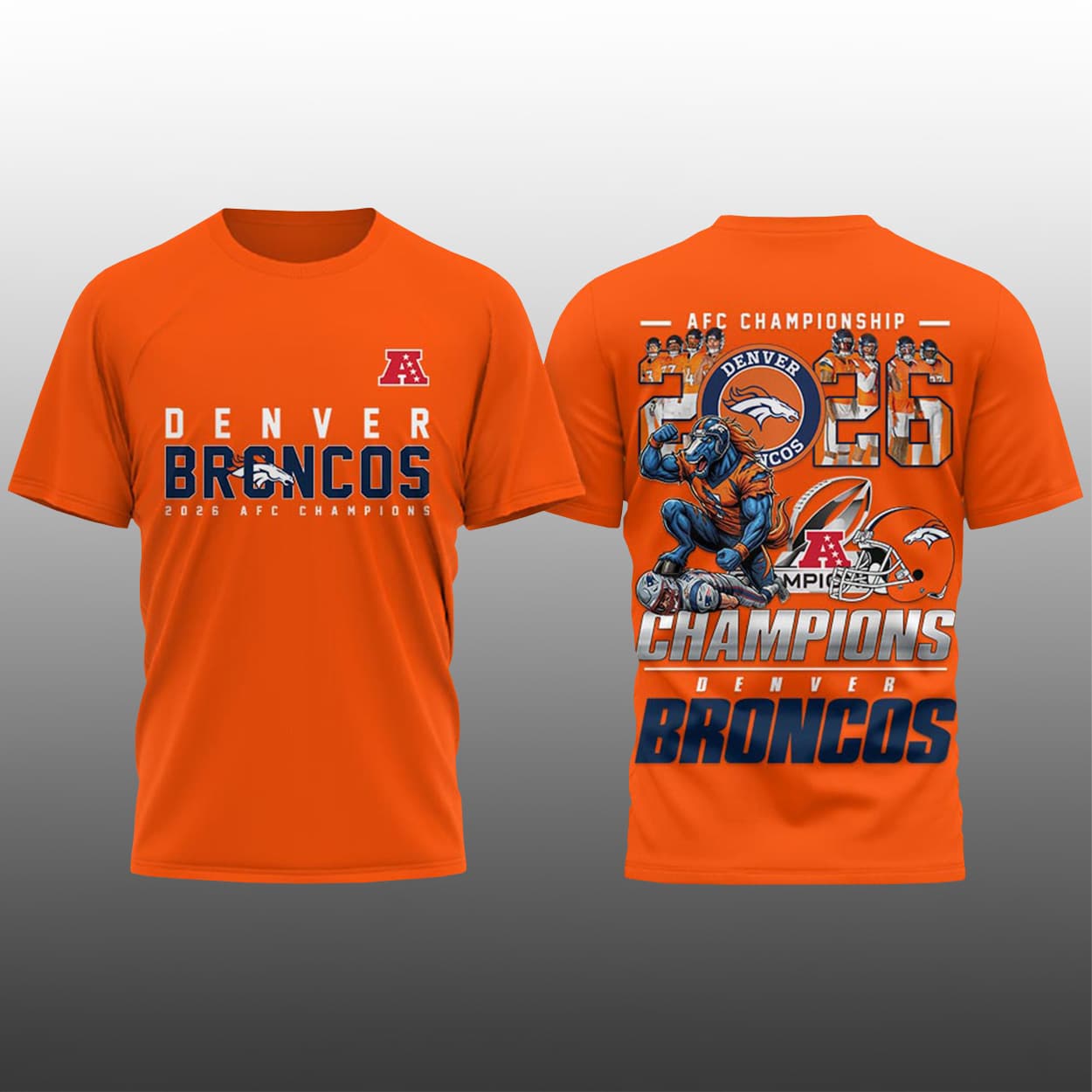 Commemorate the Broncos’ legendary 2026 AFC Championship victory with this Broncos 2026 AFC Championship Champions Shirt. Featuring iconic “2026” victory graphics and a triumphant mascot, it’s the ultimate Mile High fan gear for the Super Bowl run.