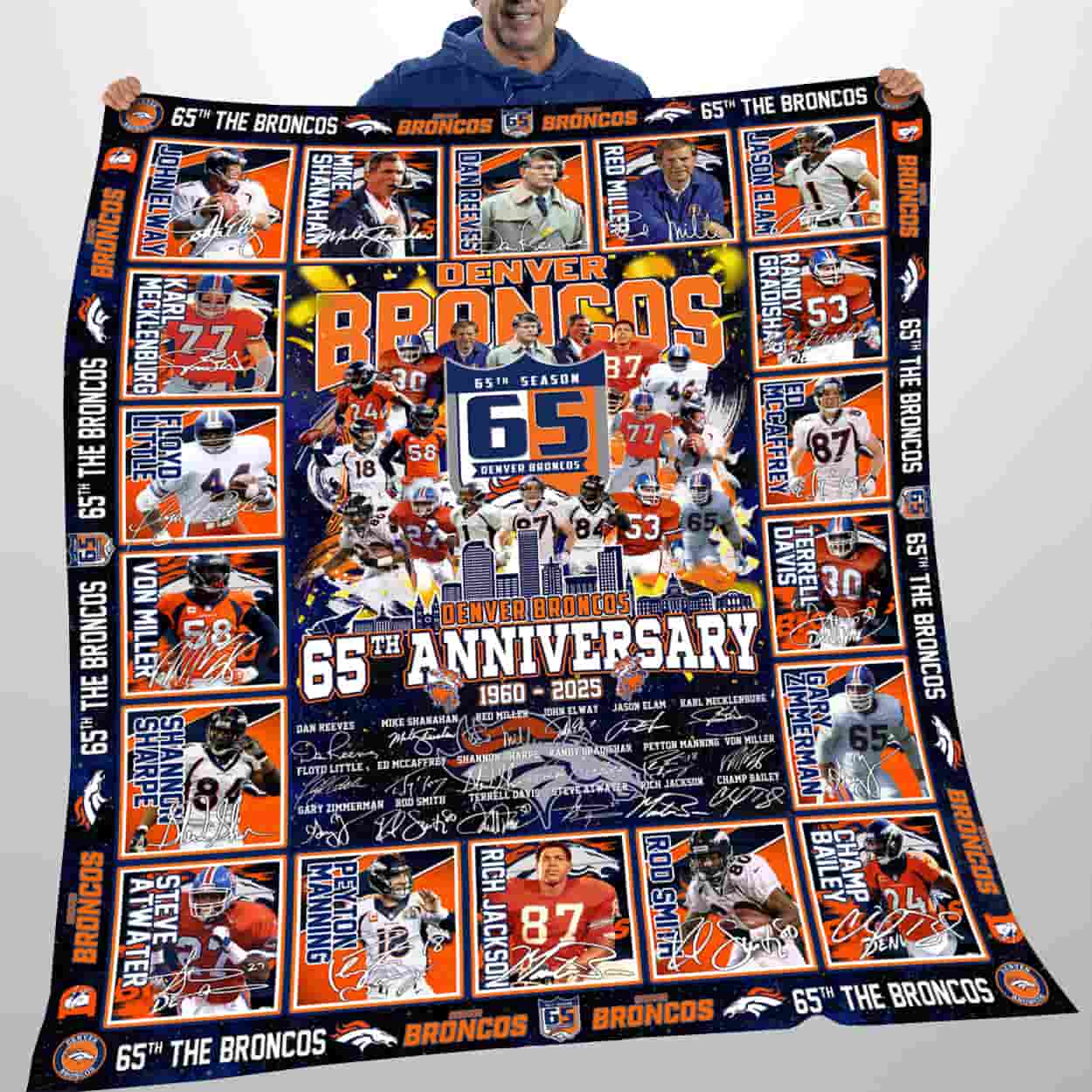 Celebrate six and a half decades of gridiron greatness with the Broncos 65th Anniversary 1960-2025 Blanket—where legendary players and team pride come together in cozy style.