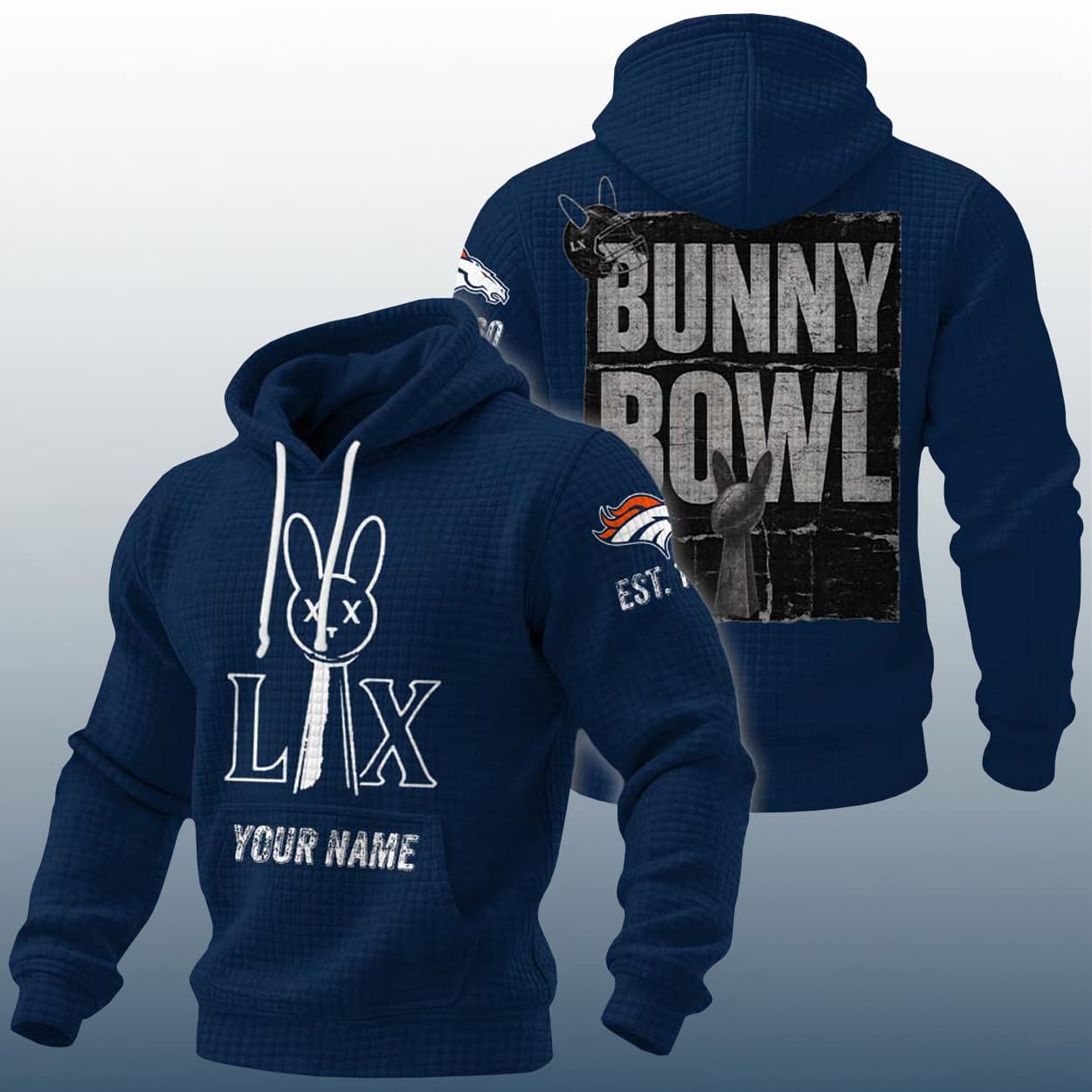 Ready to hop into the spotlight? Customize your Broncos Bunny Bowl LX 2026 Waffle Hoodie and show the world that football isn’t just fierce—it’s fun. Order yours today and lead the charge with ears up and spirits high.