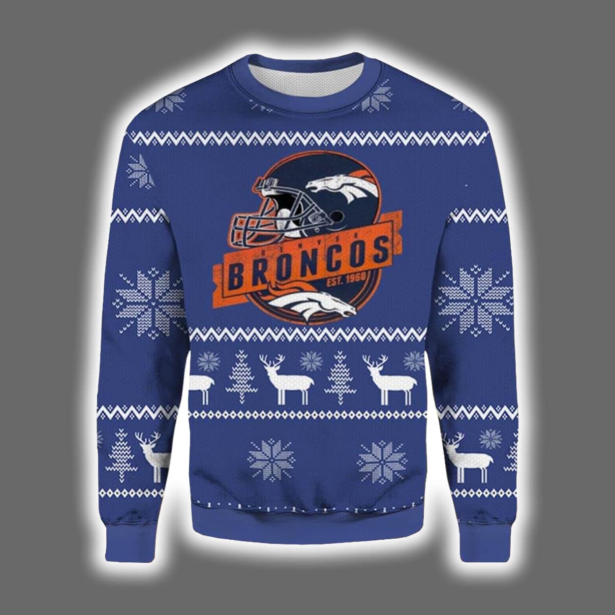 Whether you’re decking the halls or dominating the fantasy league, the Broncos EST 1960 Ugly Christmas Sweater is your go-to gear. Grab yours now and let your fandom shine brighter than Rudolph’s nose!
