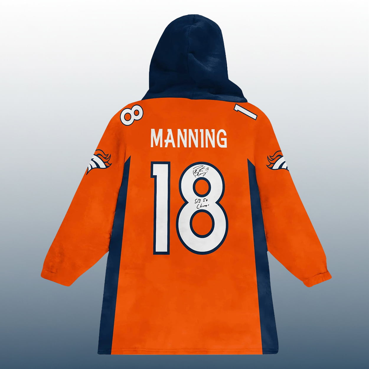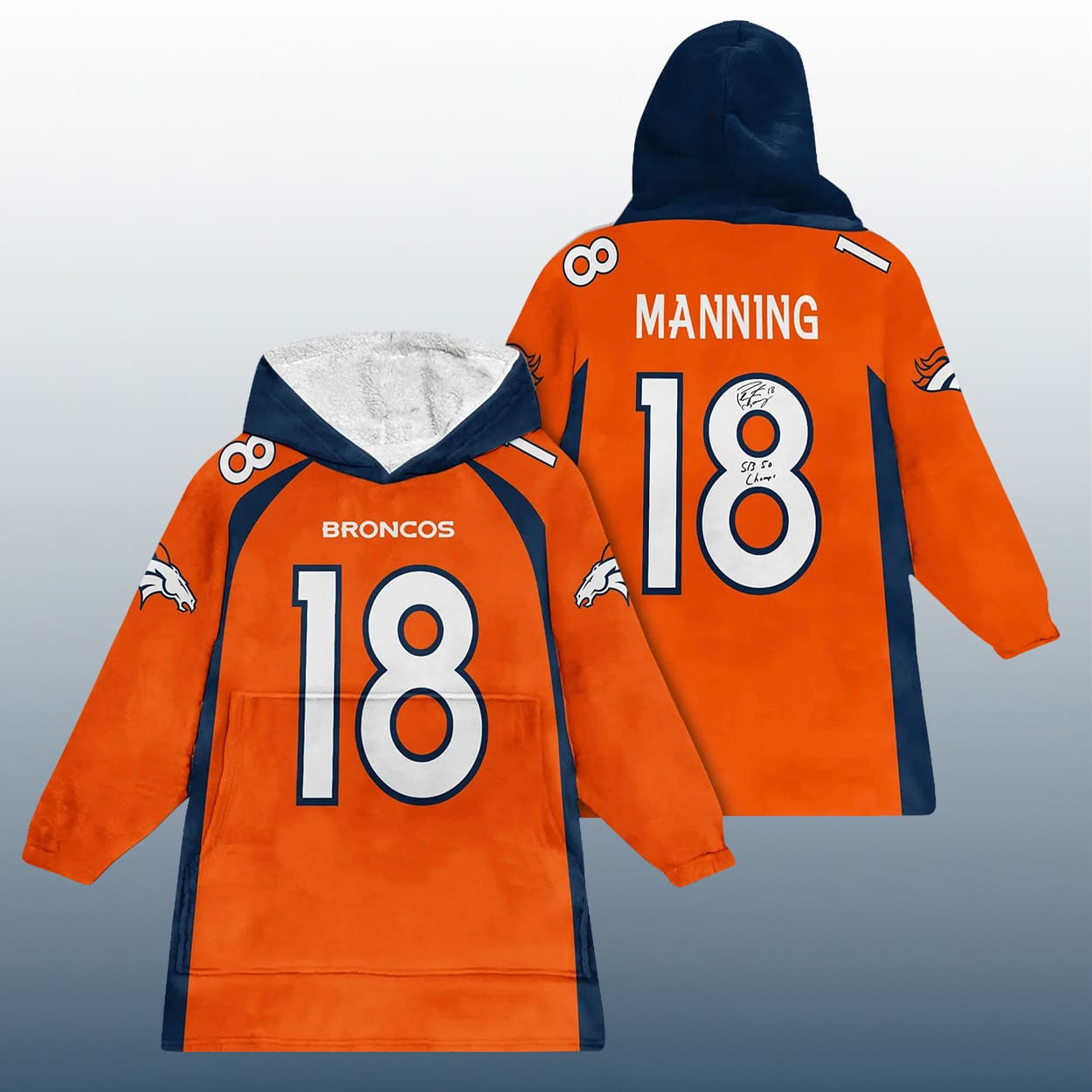 Score Big Style: The Broncos Peyton Manning 18 Signature Unisex Blanket Hoodie