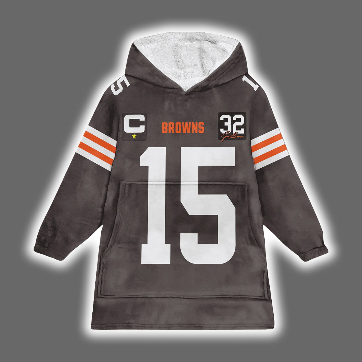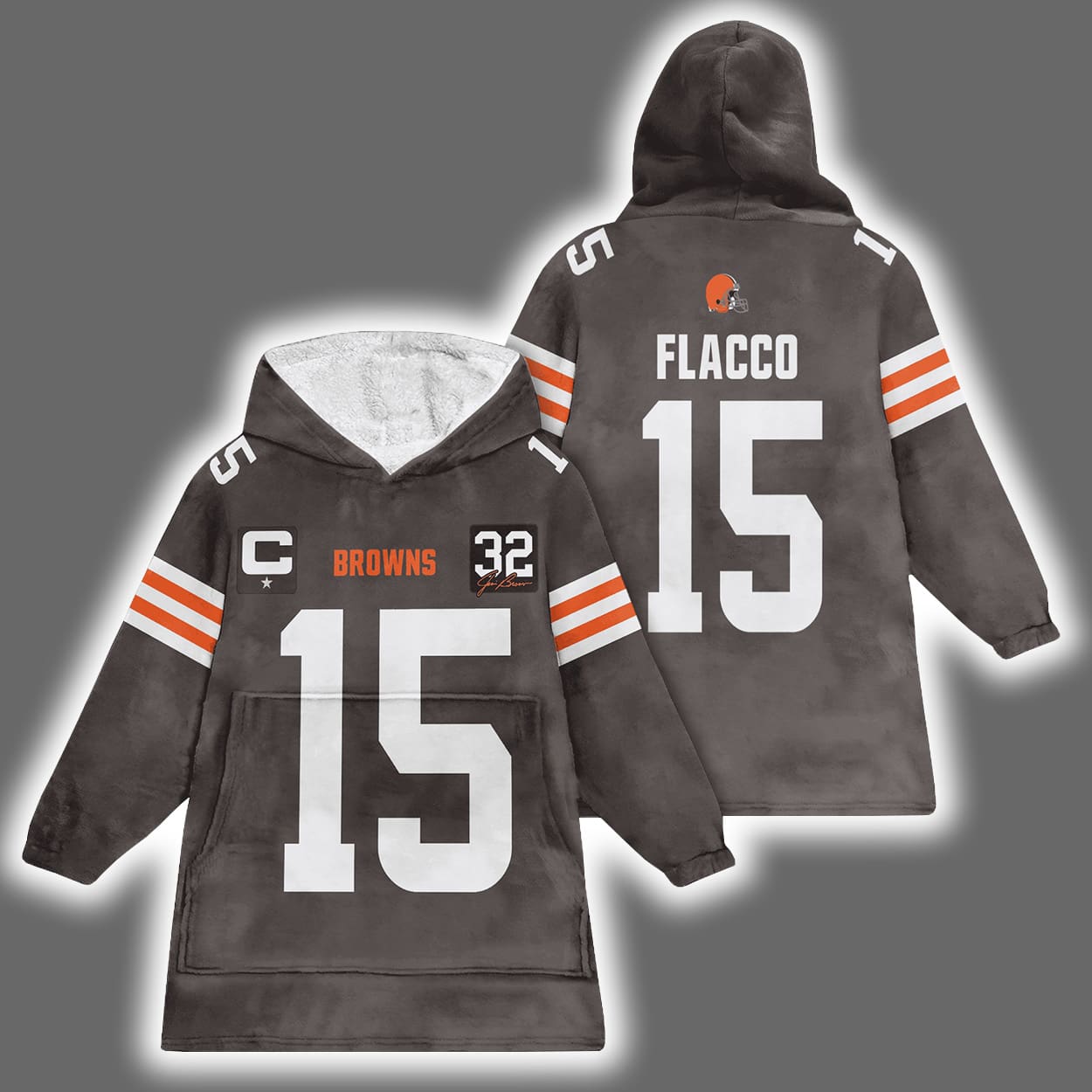 Browns Captain Joe Flacco 15 Unisex Blanket Hoodie