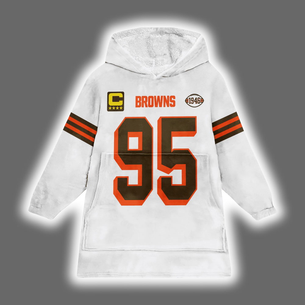 Browns Captain Myles Garrett 95 Football Blanket Hoodie