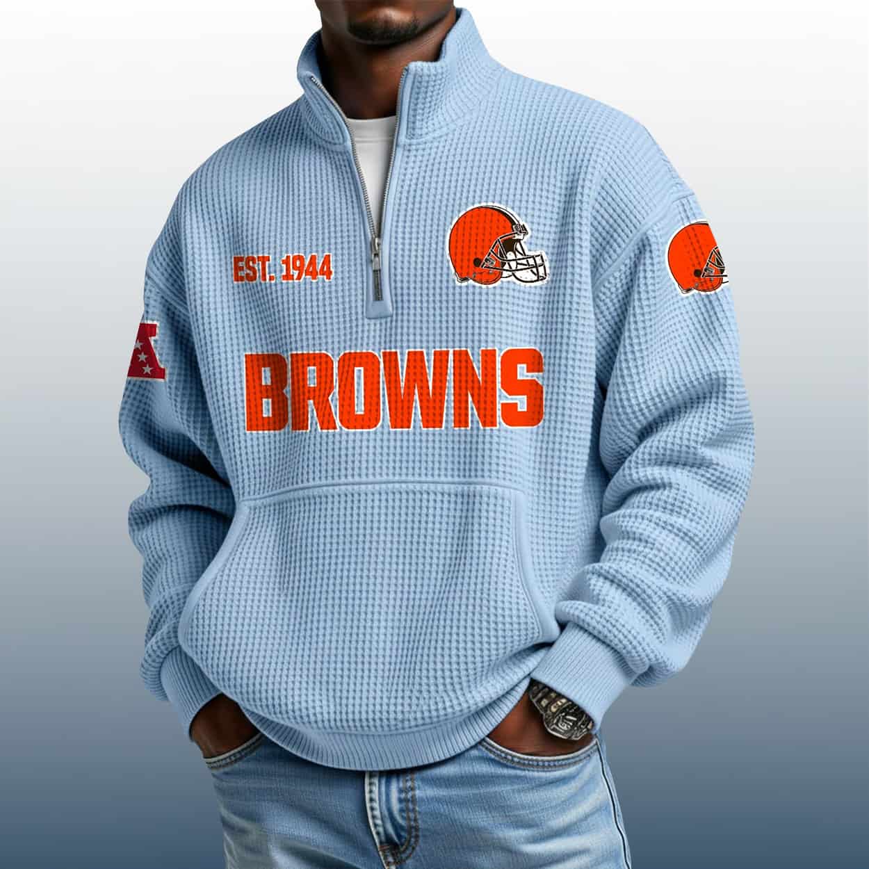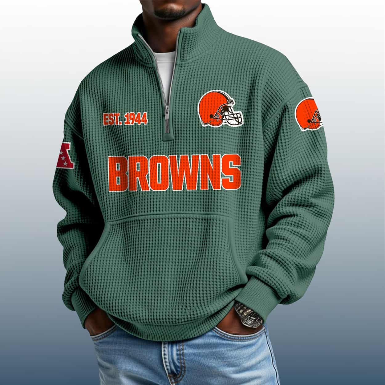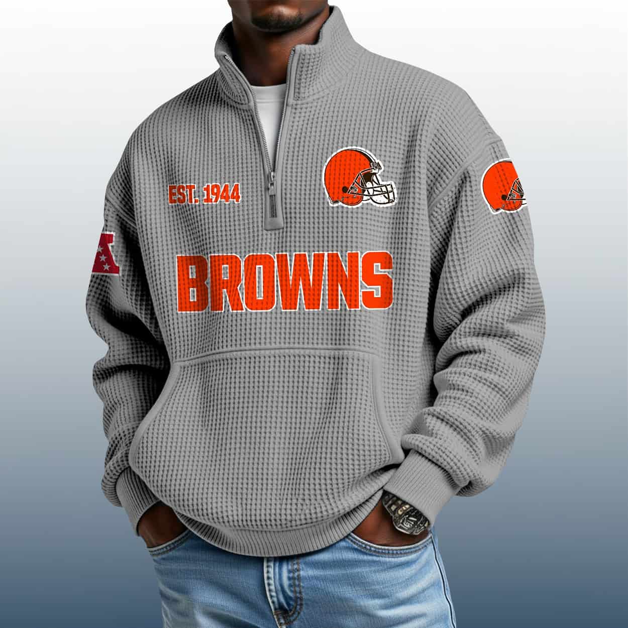 From Dawg Pound to Downtown: The Browns Est 1944 Stand Collar Half Zip Waffle Sweatshirt That Speaks Volumes