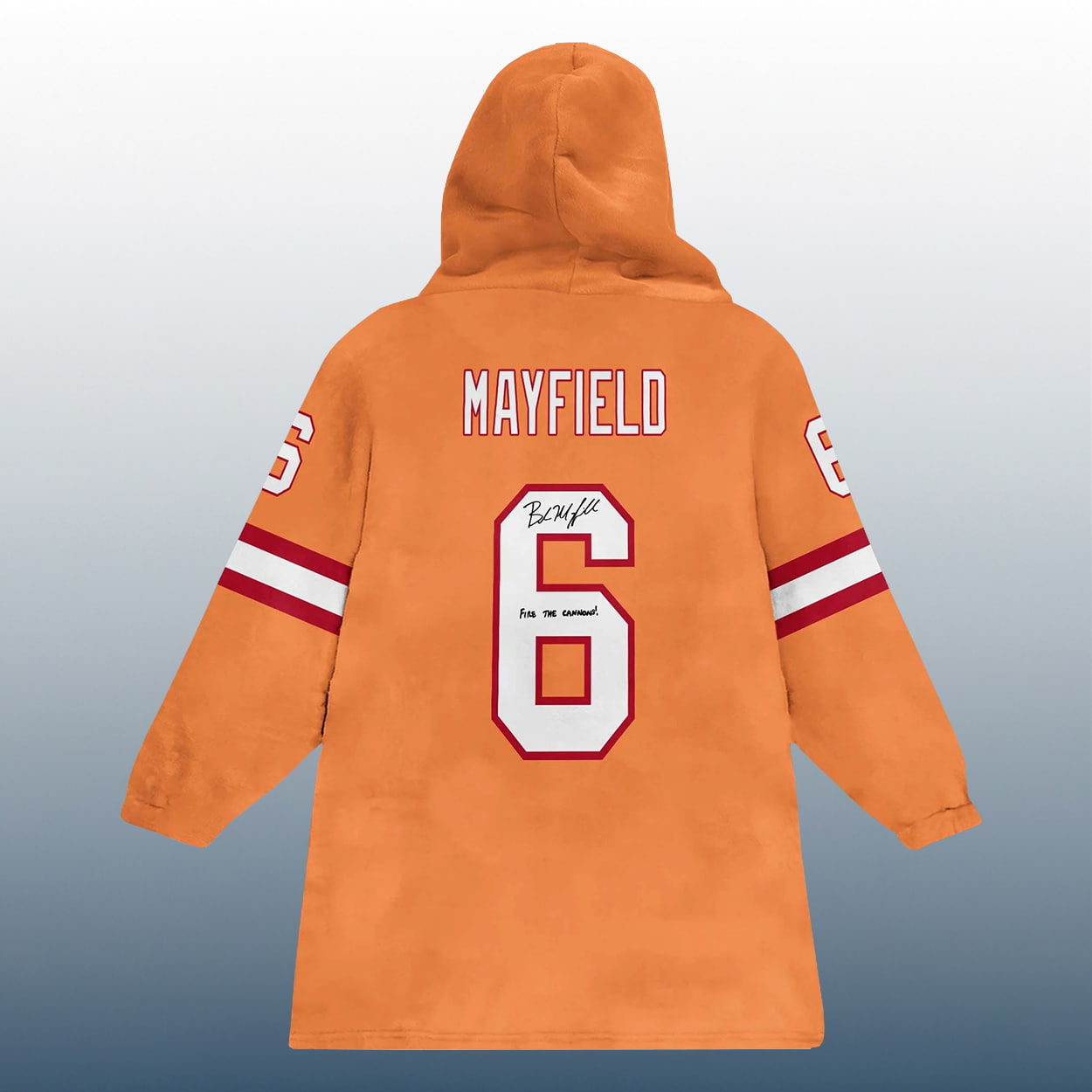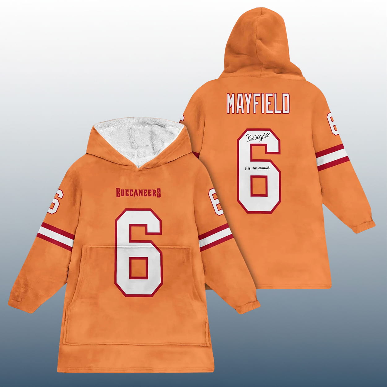Turn Heads and Tackle Chills with Buccaneers Baker Mayfield 6 Signature Unisex Blanket Hoodie!