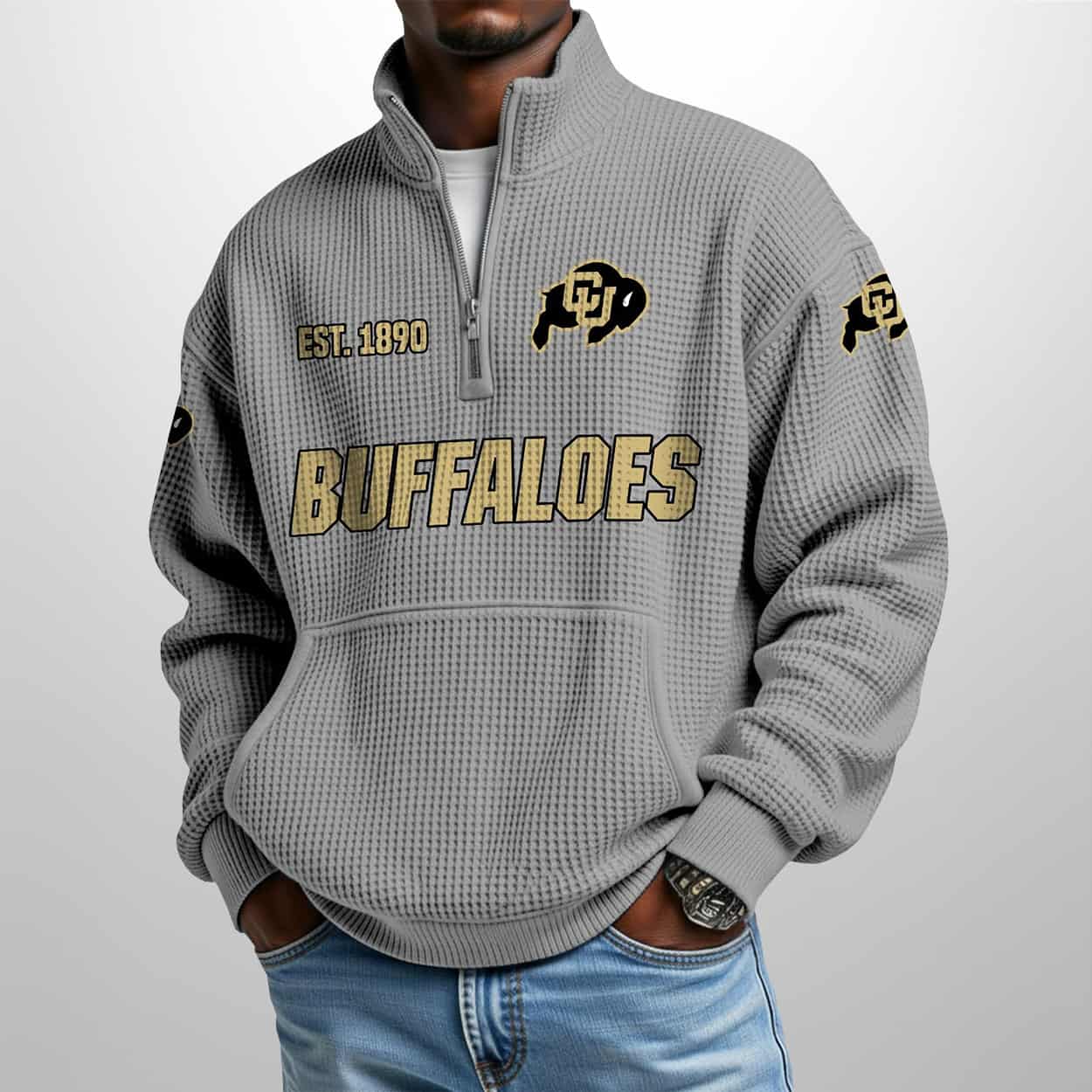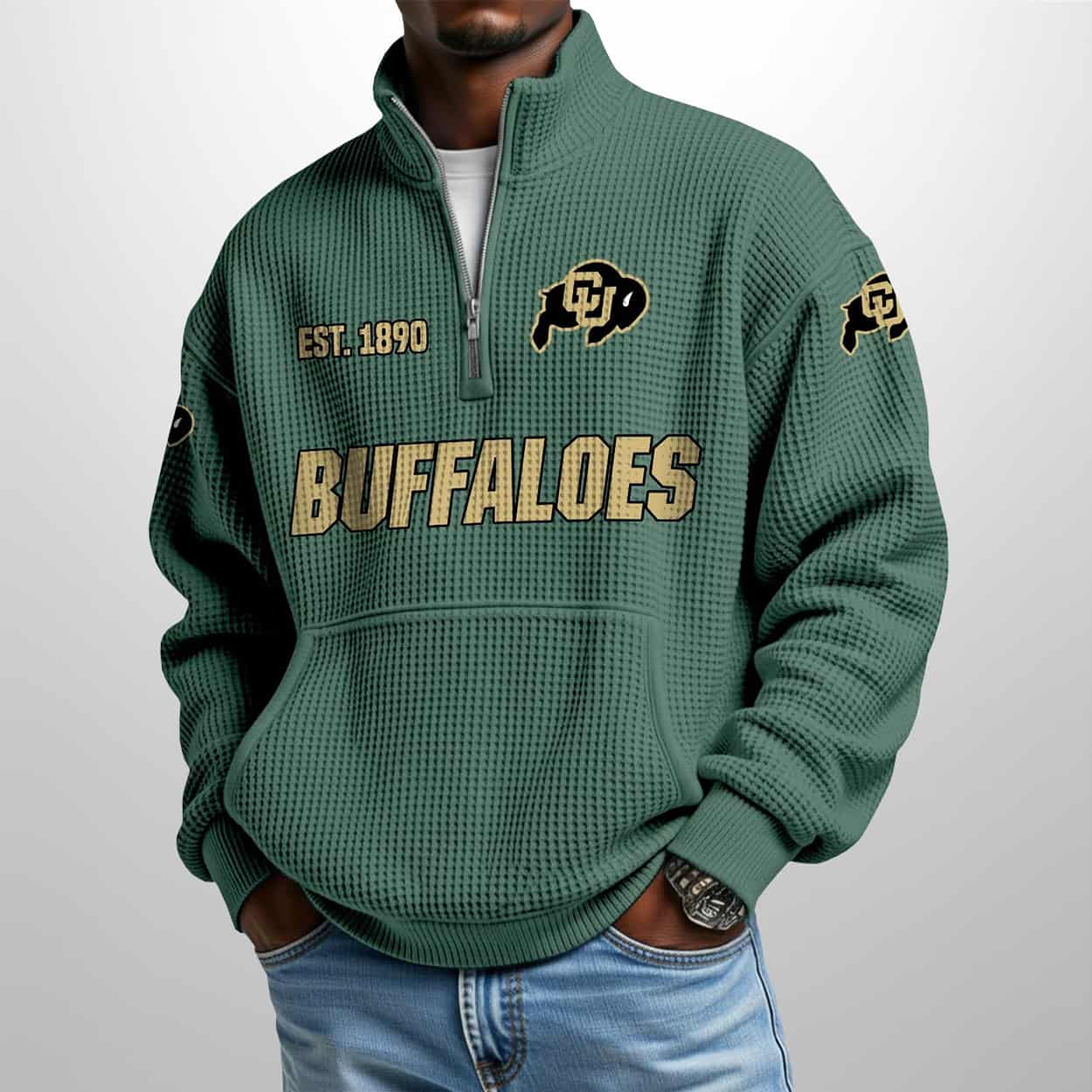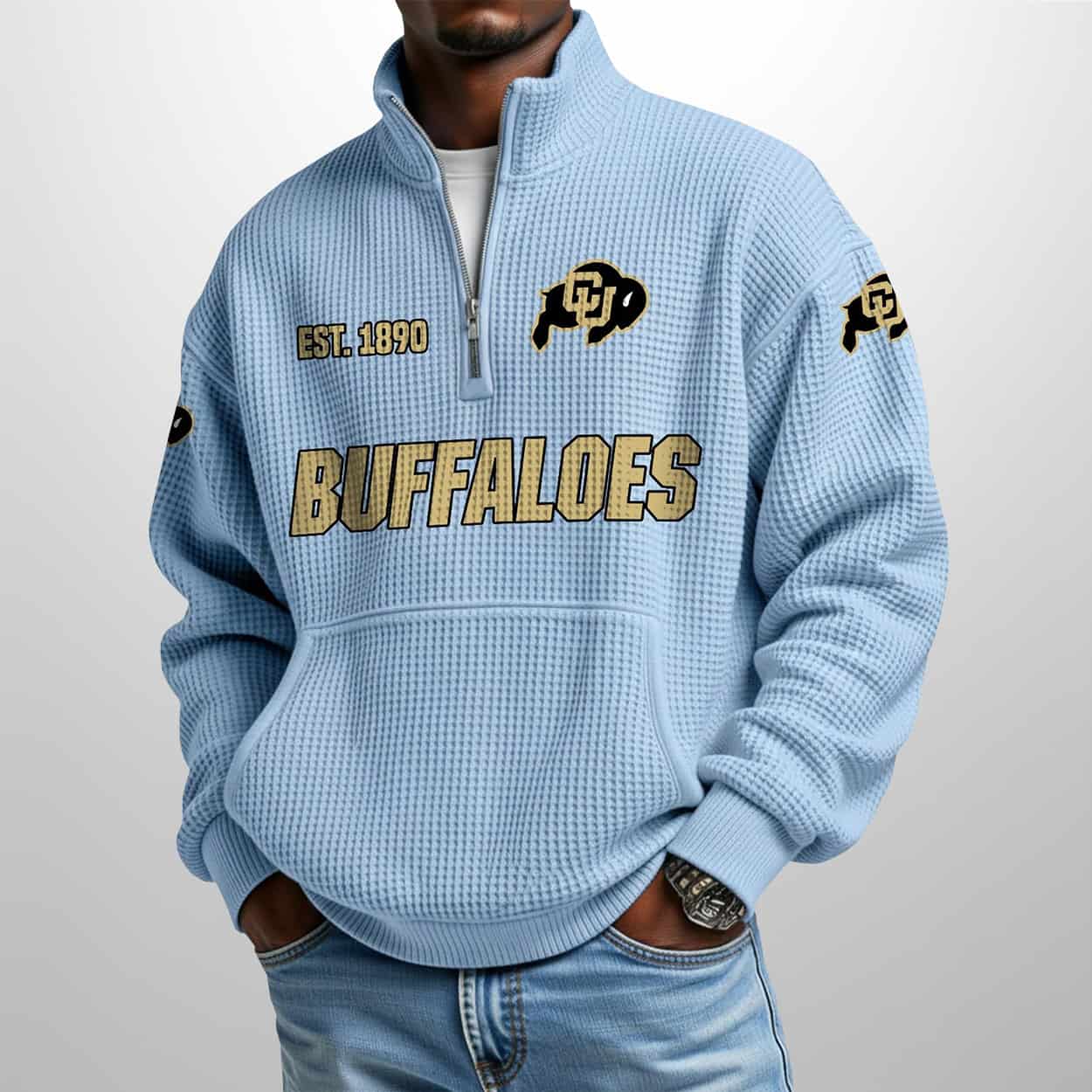 Bold Like the Rockies: The Buffaloes Est 1890 Waffle Stand Collar Half Zip Sweatshirt That Roars