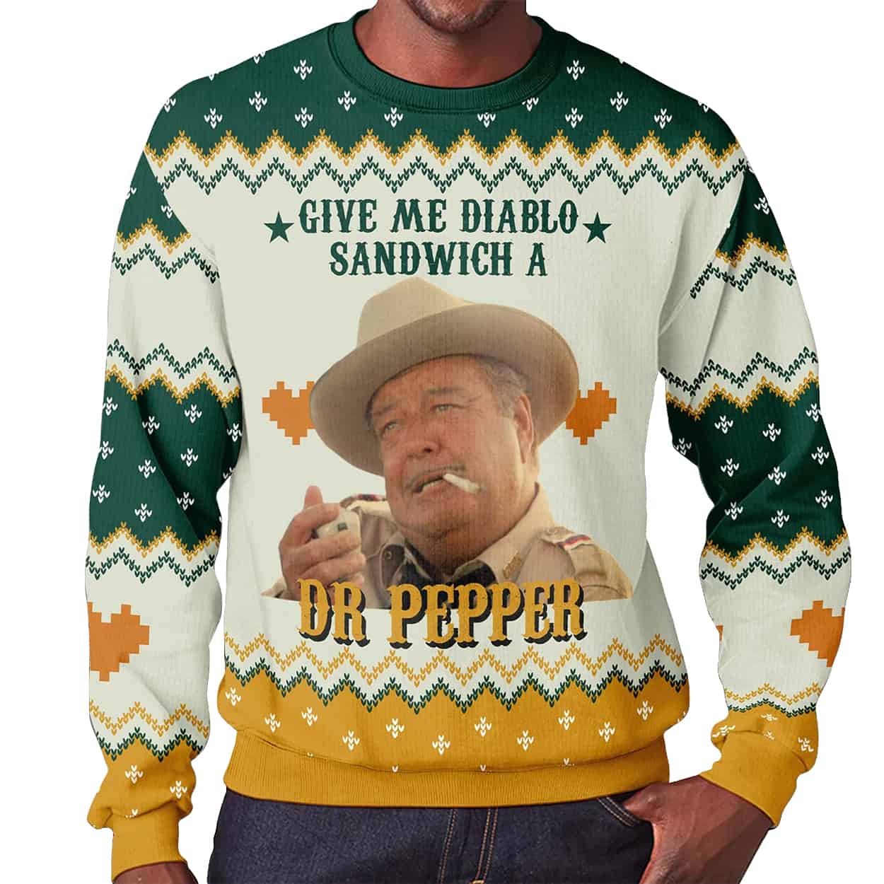 Buford T Justice Diablo Sandwich A Dr Pepper Ugly Christmas Sweater – A Smokey Holiday Showstopper