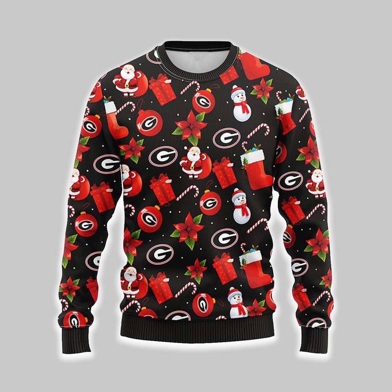 Bulldogs Santa Claus Snowman Ugly Christmas Sweater – Go Dawgs for the Holidays