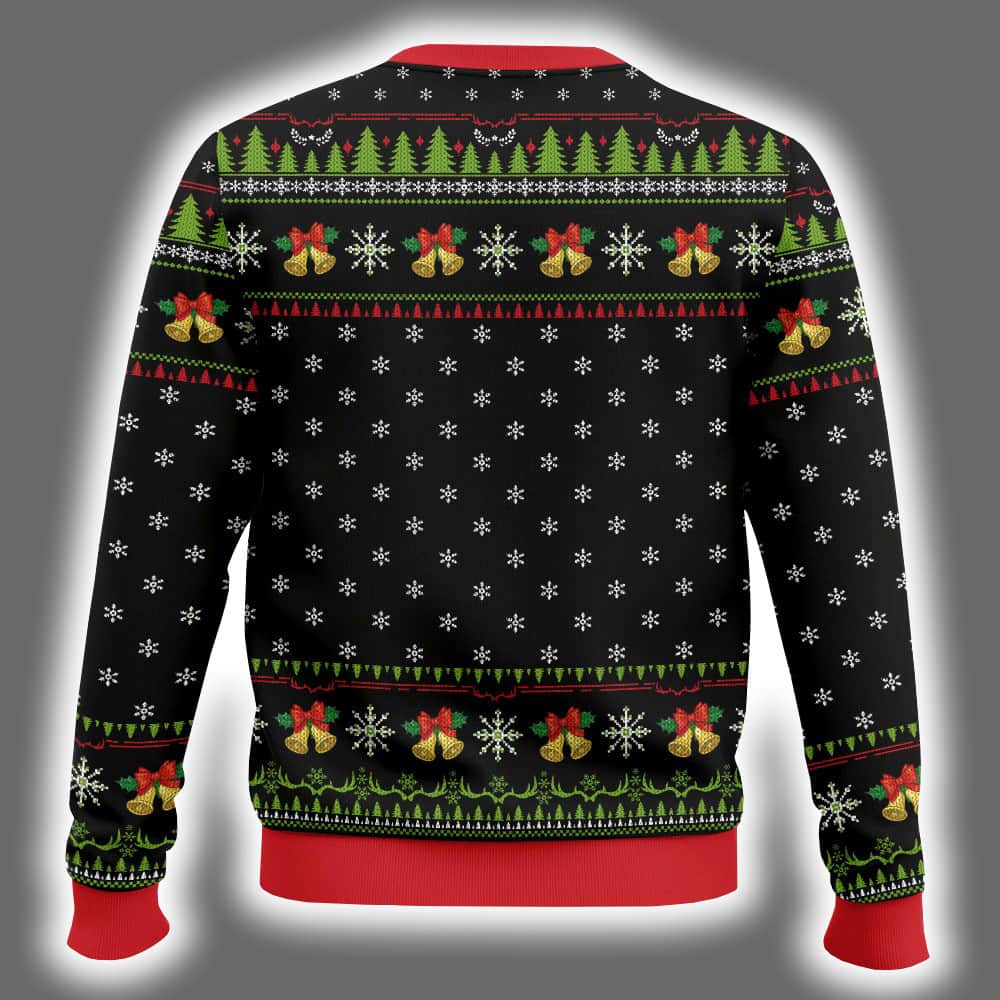 Deck the halls with attitude in this hilariously bold ugly Christmas sweater featuring none other than Mr. Chow from The Hangover. Set against a festive backdrop of snowflakes, holly, and Christmas trees in classic red, green, and white, the black base makes the central image pop: Mr. Chow in his iconic shades and jacket, serving his signature deadpan stare. Framed above and below with the unforgettable phrase “BUT DID YOU DIE,” this sweater is a cheeky nod to surviving chaos—be it wild nights, awkward family dinners, or questionable holiday decisions.