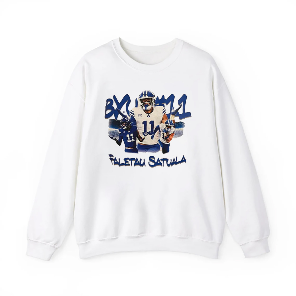 Celebrate bold moves and gridiron greatness with the BYU 11 Faletau Satuala Shirt — a dynamic tribute to a rising football star, designed for fans who love flair and fire.