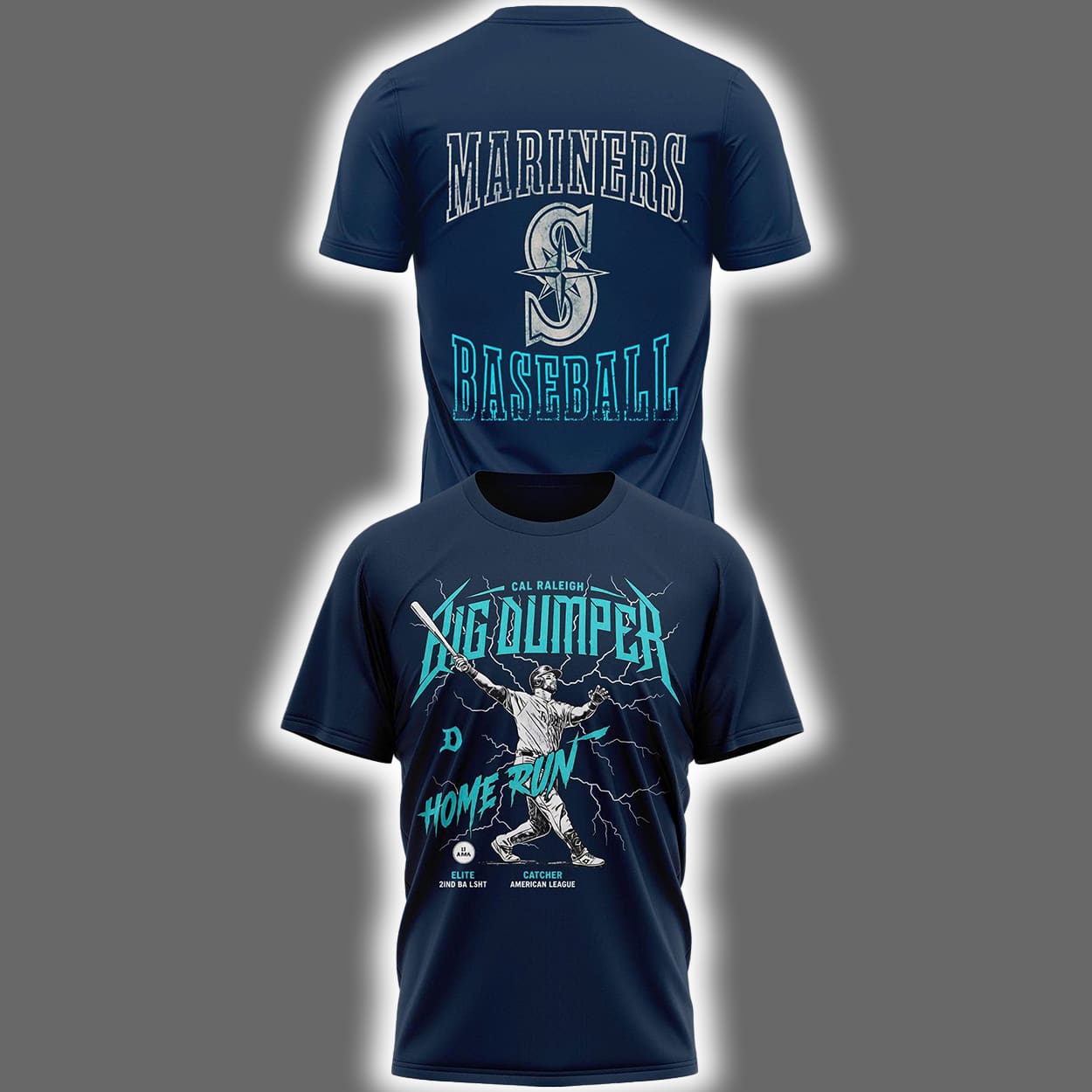 Celebrate the power and personality of Mariners catcher Cal Raleigh with the Cal Raleigh The Big Dumper Home Run 2025 Shirt—a bold tribute to one of baseball’s most unforgettable nicknames and moments.
