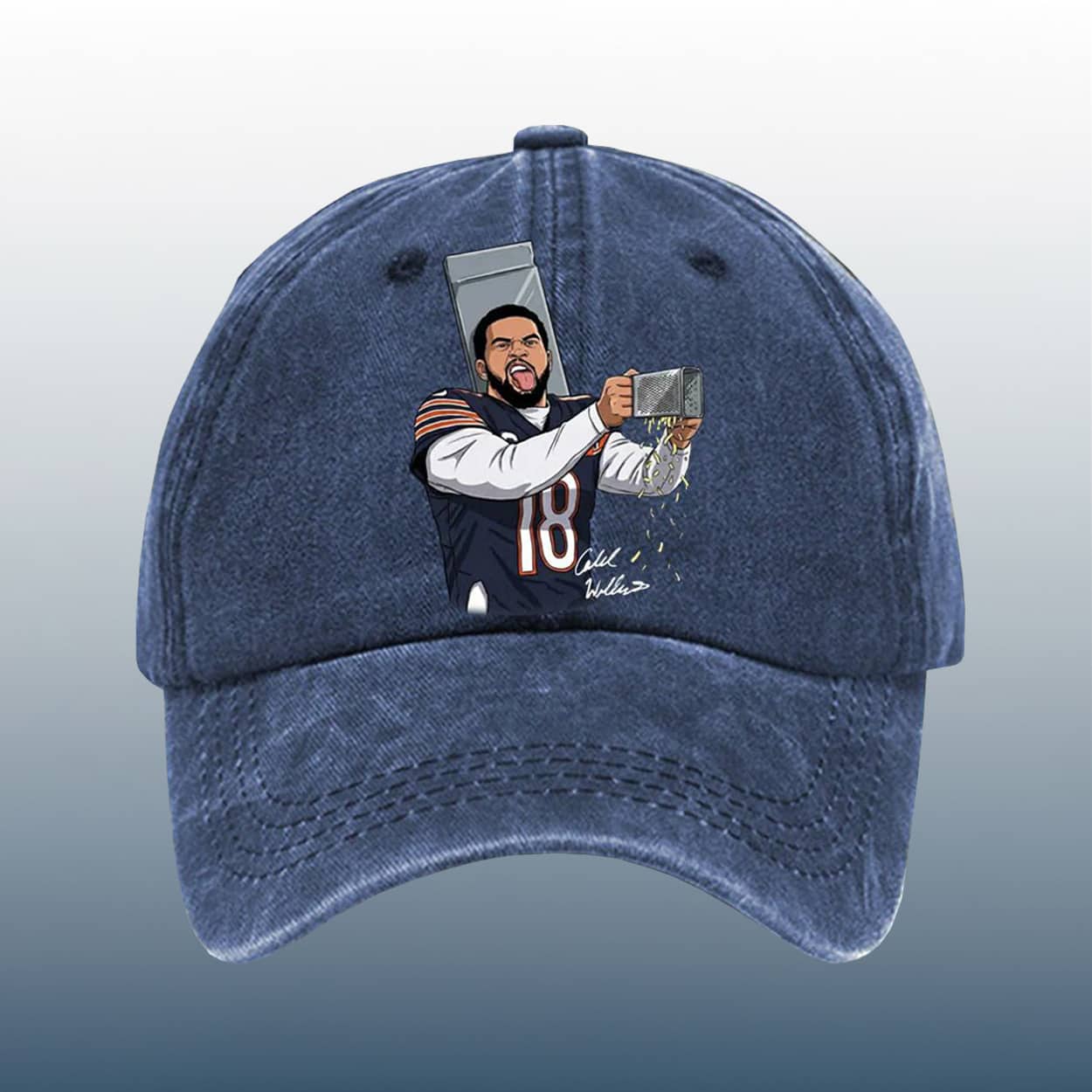 Celebrate the rivalry with a cheeky twist—Caleb Williams Grating Cheese Print Cap is a bold nod to Bears pride and Packers shade, perfect for fans who love humor with their game-day gear.