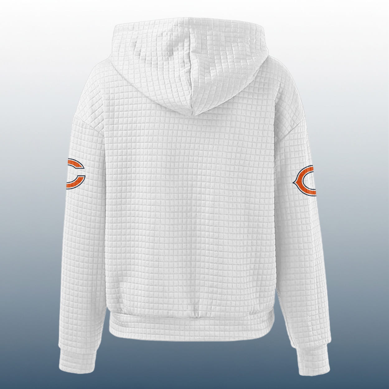 This hoodie is a visual touchdown for fans who live and breathe college football excellence. This white hoodie pops with a textured grid pattern and a front graphic that demands attention: “GOOD BETTER BEST” in fiery red-orange block letters, layered over an action-packed image of football players mid-play. The sleeves carry the same red-orange Bears-inspired logos, tying the whole look together with a punch of team pride and streetwear edge. From the drawstring hood to the ribbed cuffs, every detail screams style with a side of swagger.