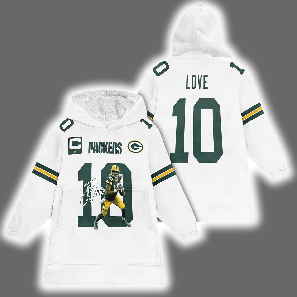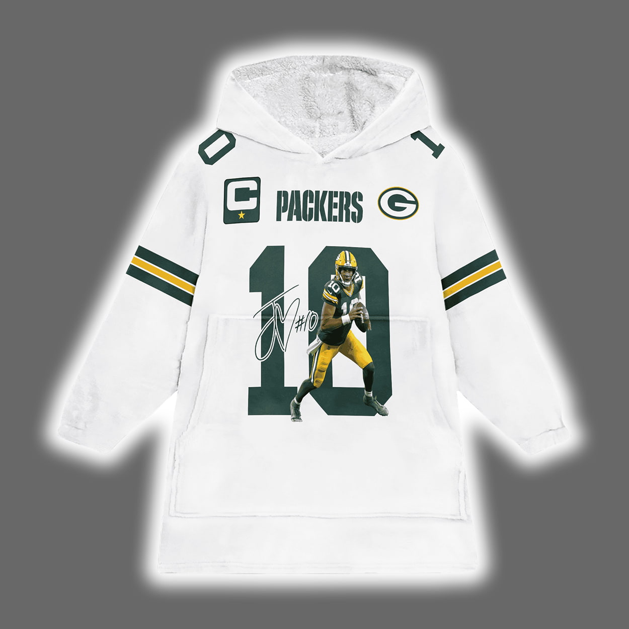 Captain Green Bay Football J.L 10 Signature Unisex Blanket Hoodie