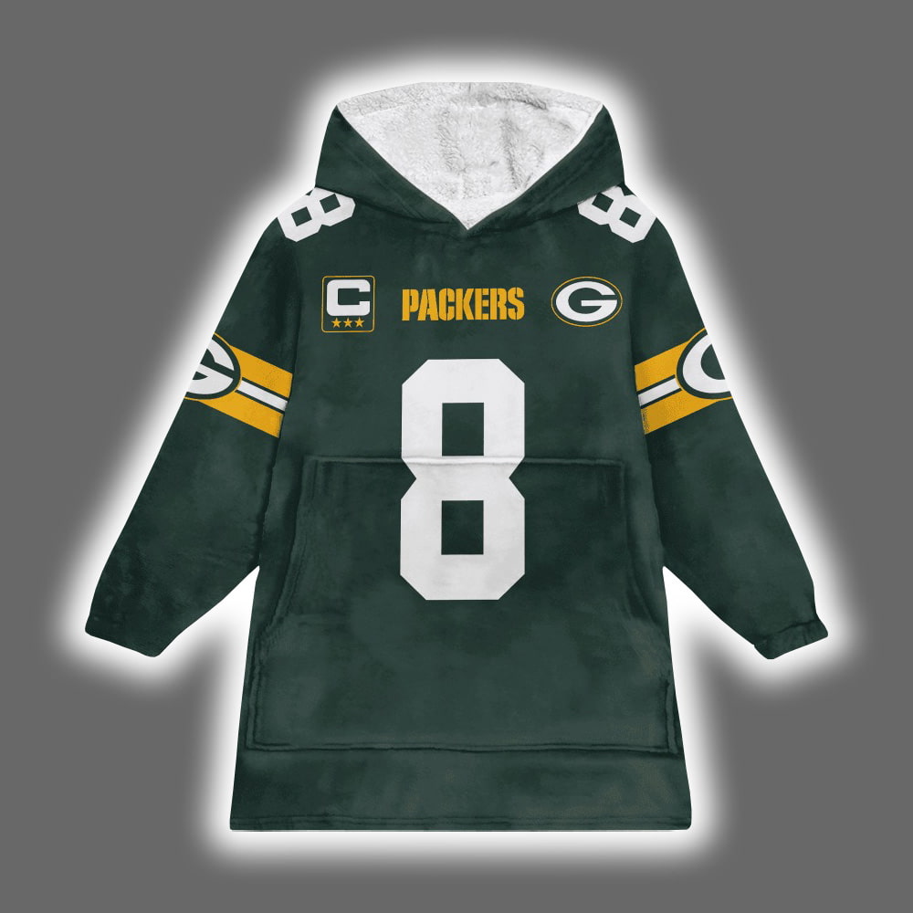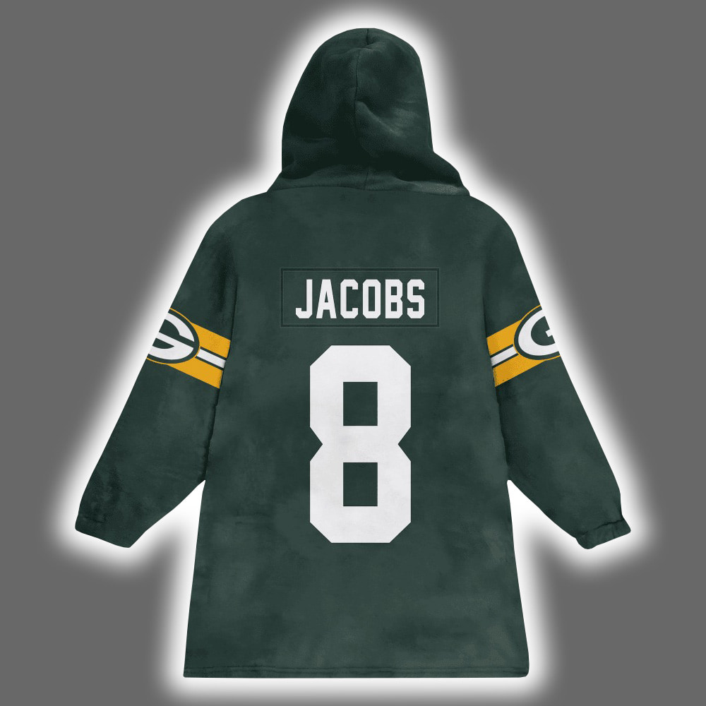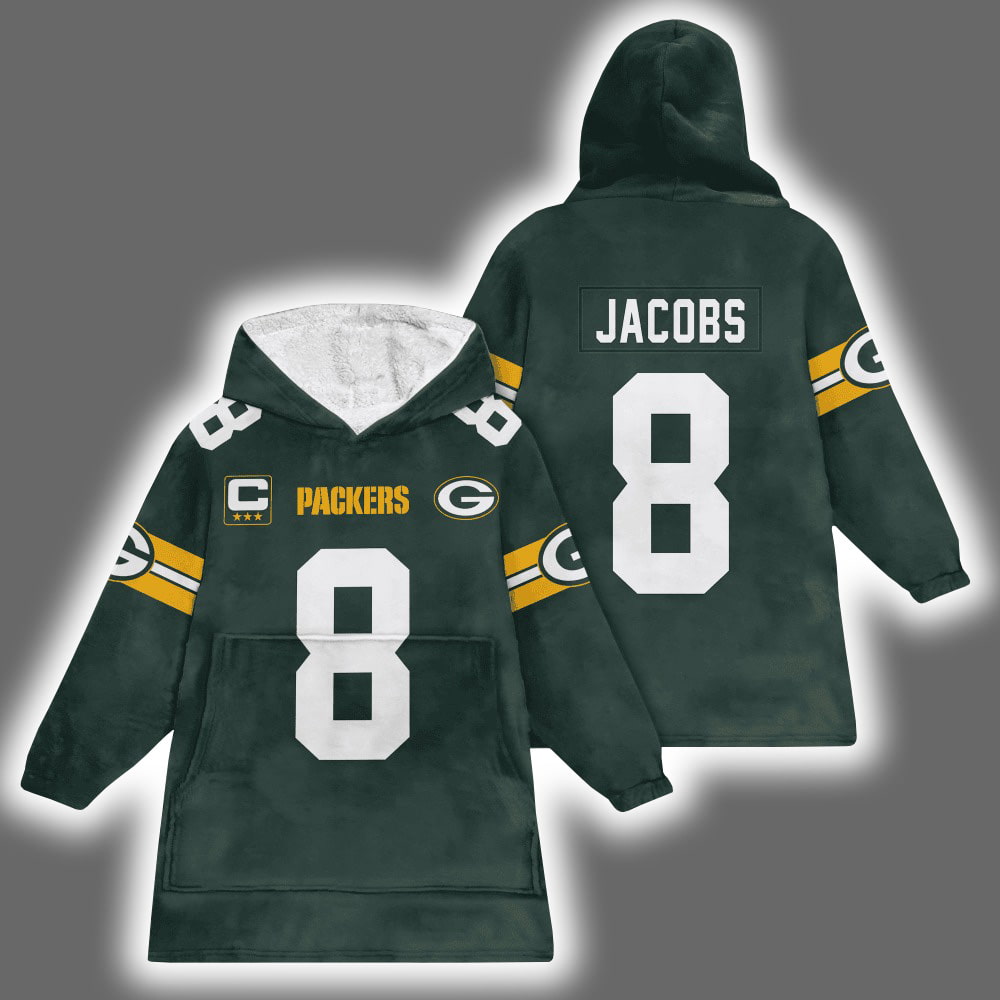 Go Bold in Green & Gold with the Captain Packers Josh Jacobs 8 Football Unisex Blanket Hoodie!
