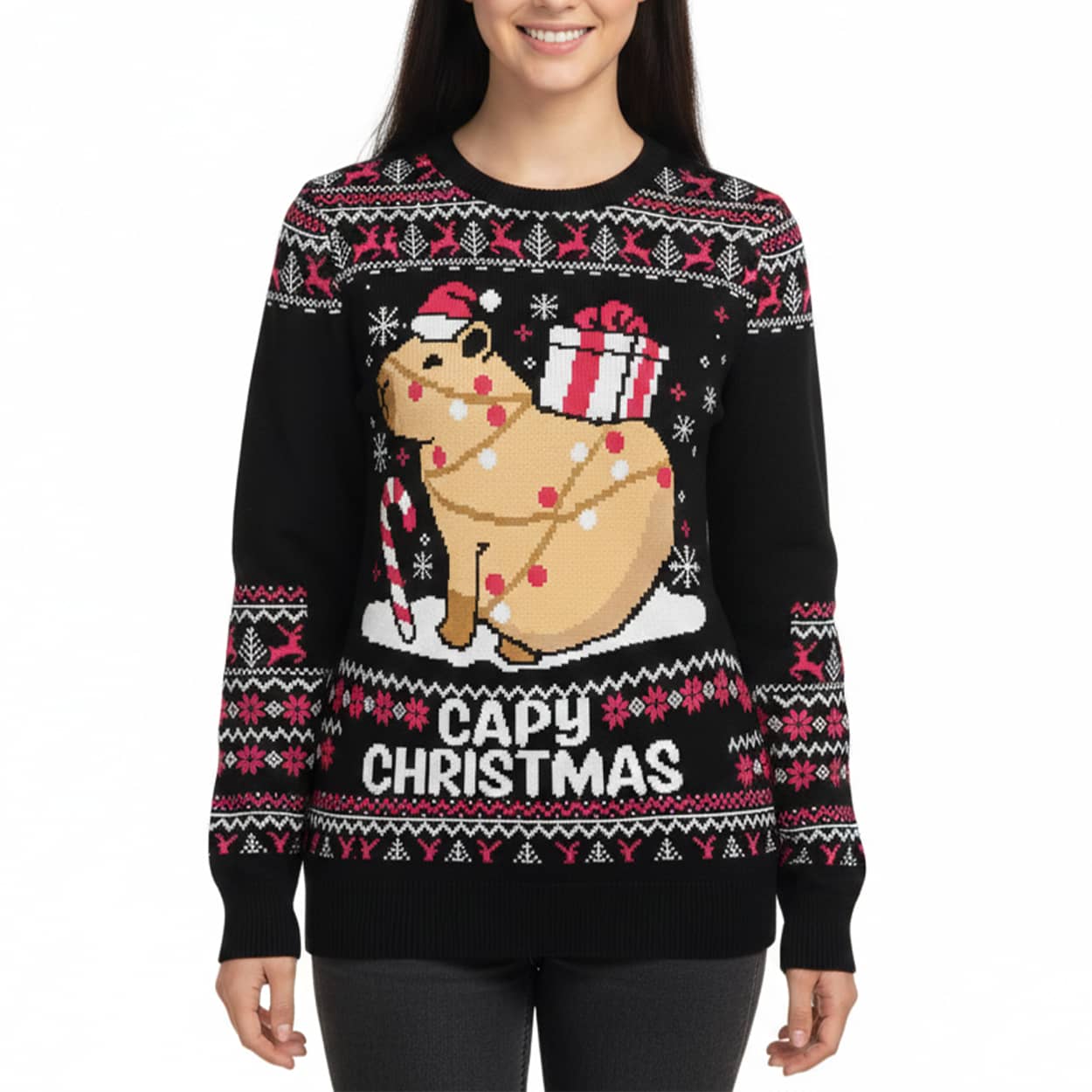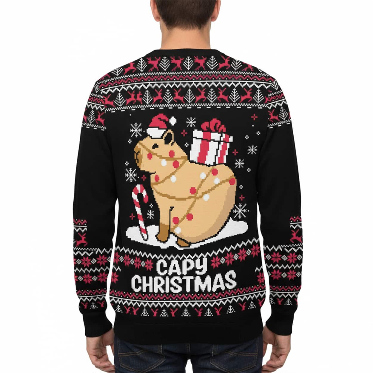 Whether you’re heading to an ugly sweater party or just want to make your family laugh at dinner, this sweater is your ticket to festive fame. Grab yours now and let the capybara do the caroling!
