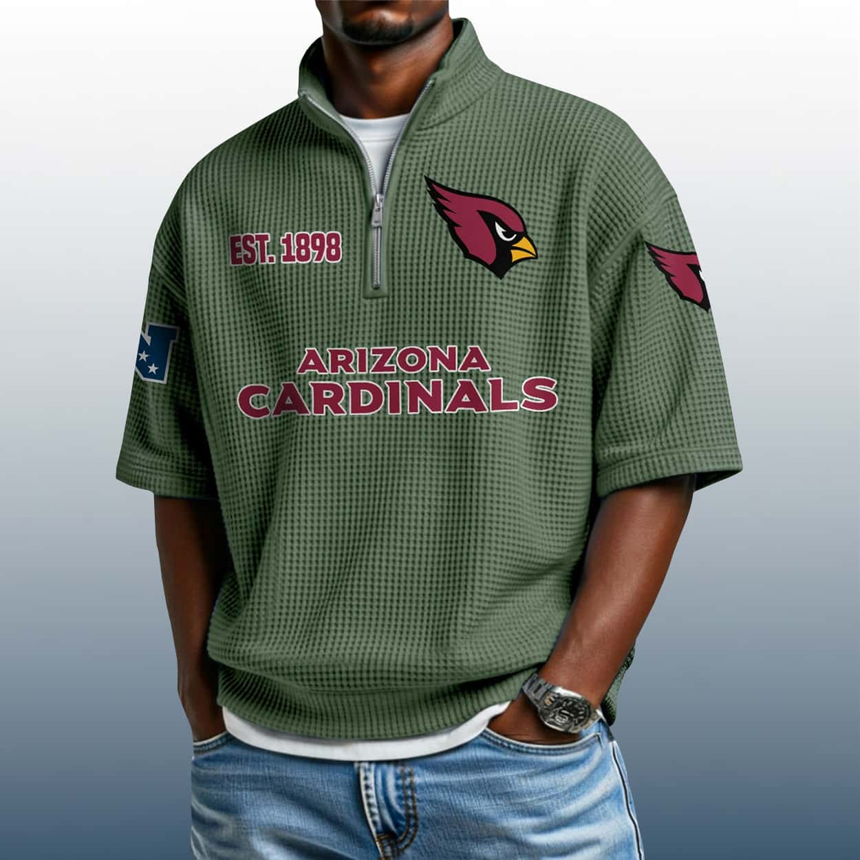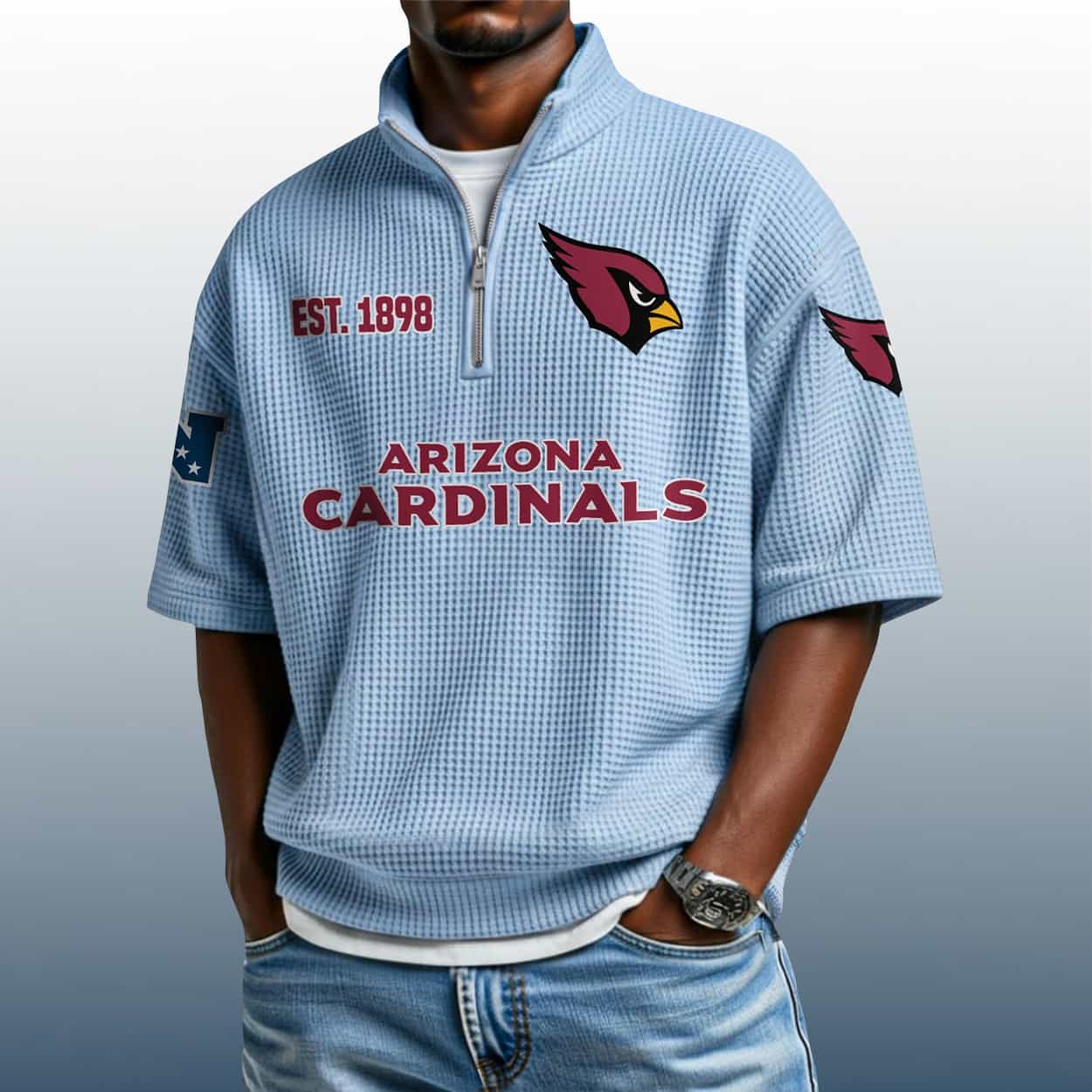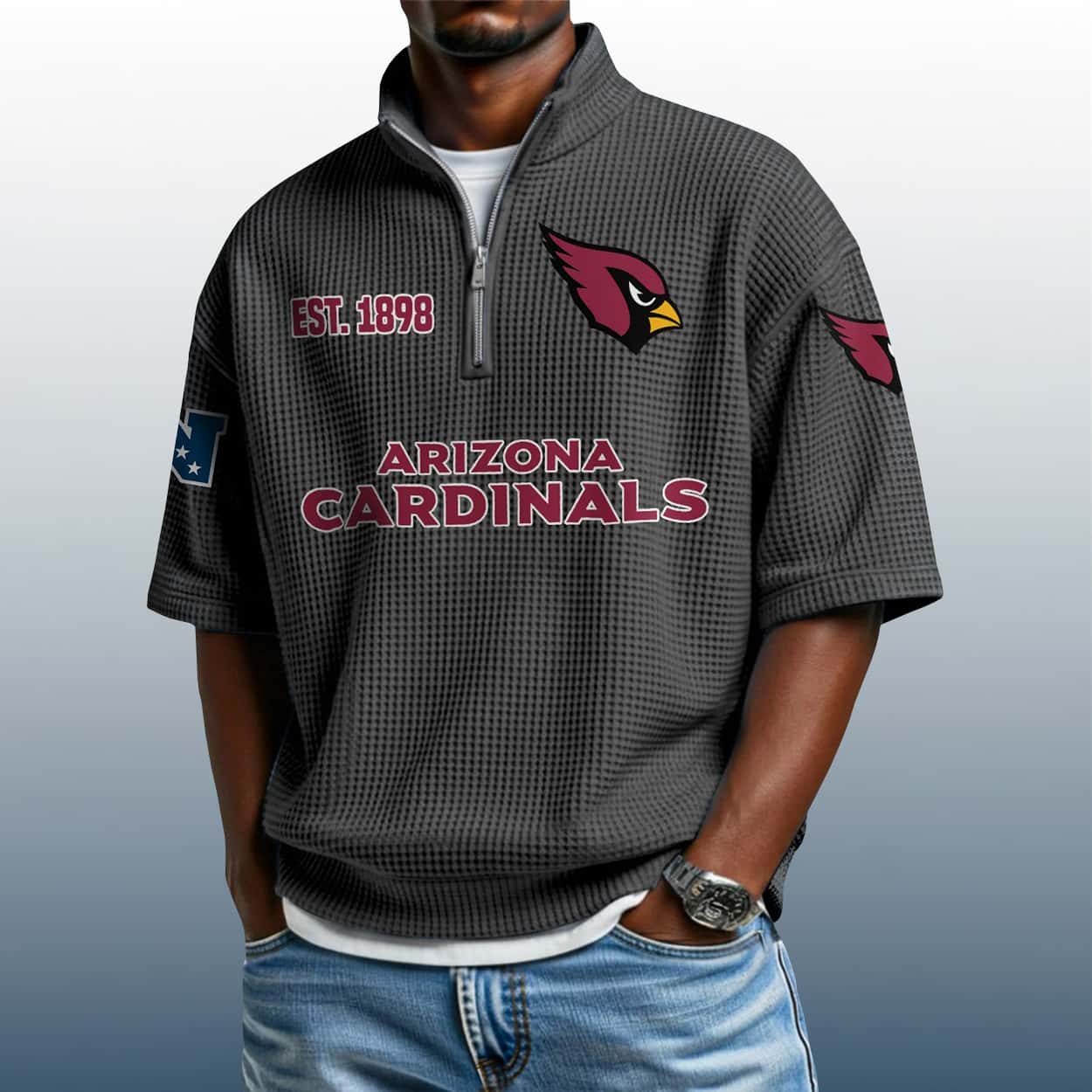 Ready to elevate your Arizona pride to a whole new level? Don’t settle for the ordinary when you can wear a piece of gridiron history. Secure your Cardinals Est 1898 Waffle Stand Collar Half Zip Polo Shirt today and represent the desert’s finest with unmatched style!