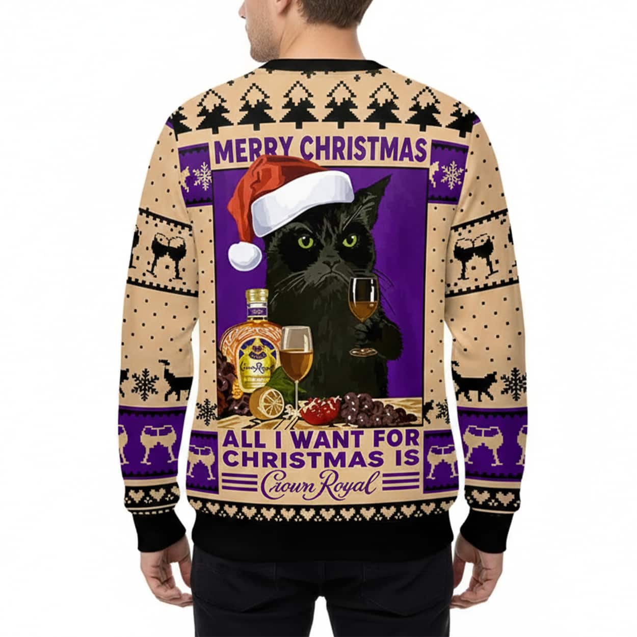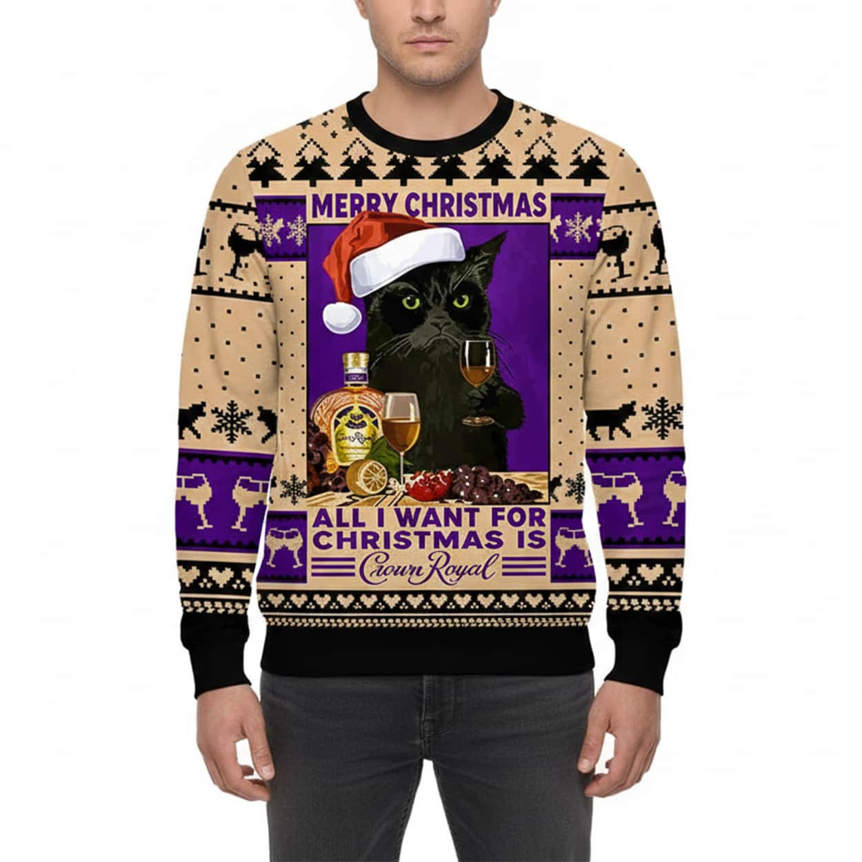 Purr-fectly Spirited: The Cat Crown Royal Is All I Want For Ugly Christmas Sweater