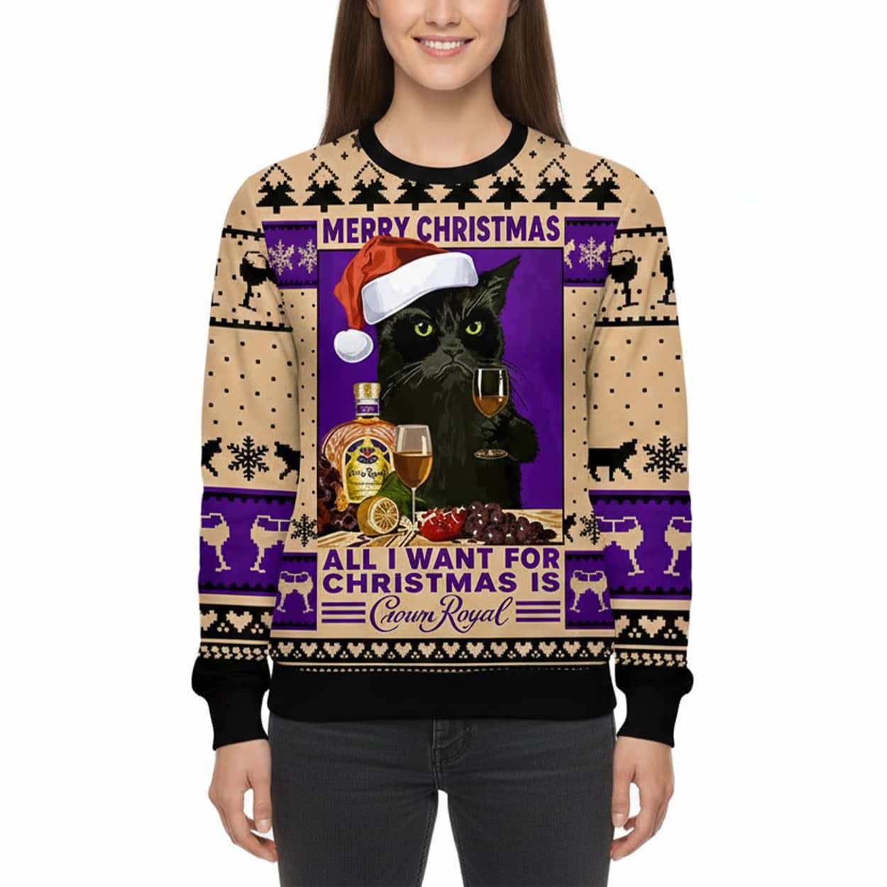 Cat Crown Royal Is All I Want For Ugly Christmas Sweater