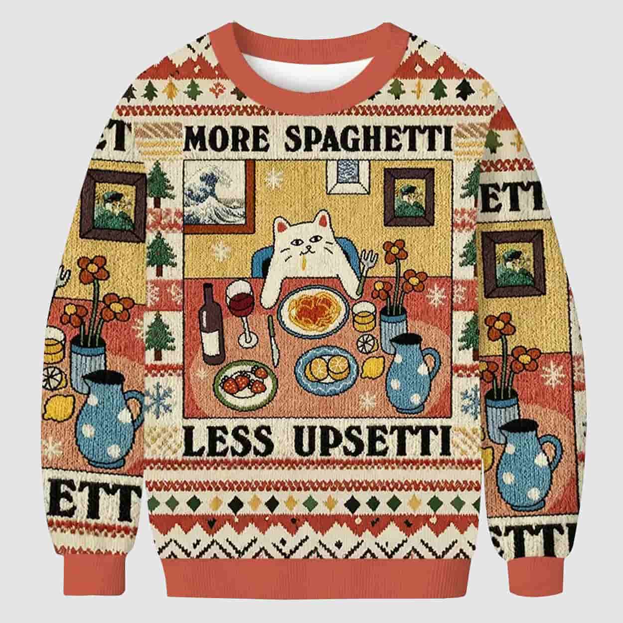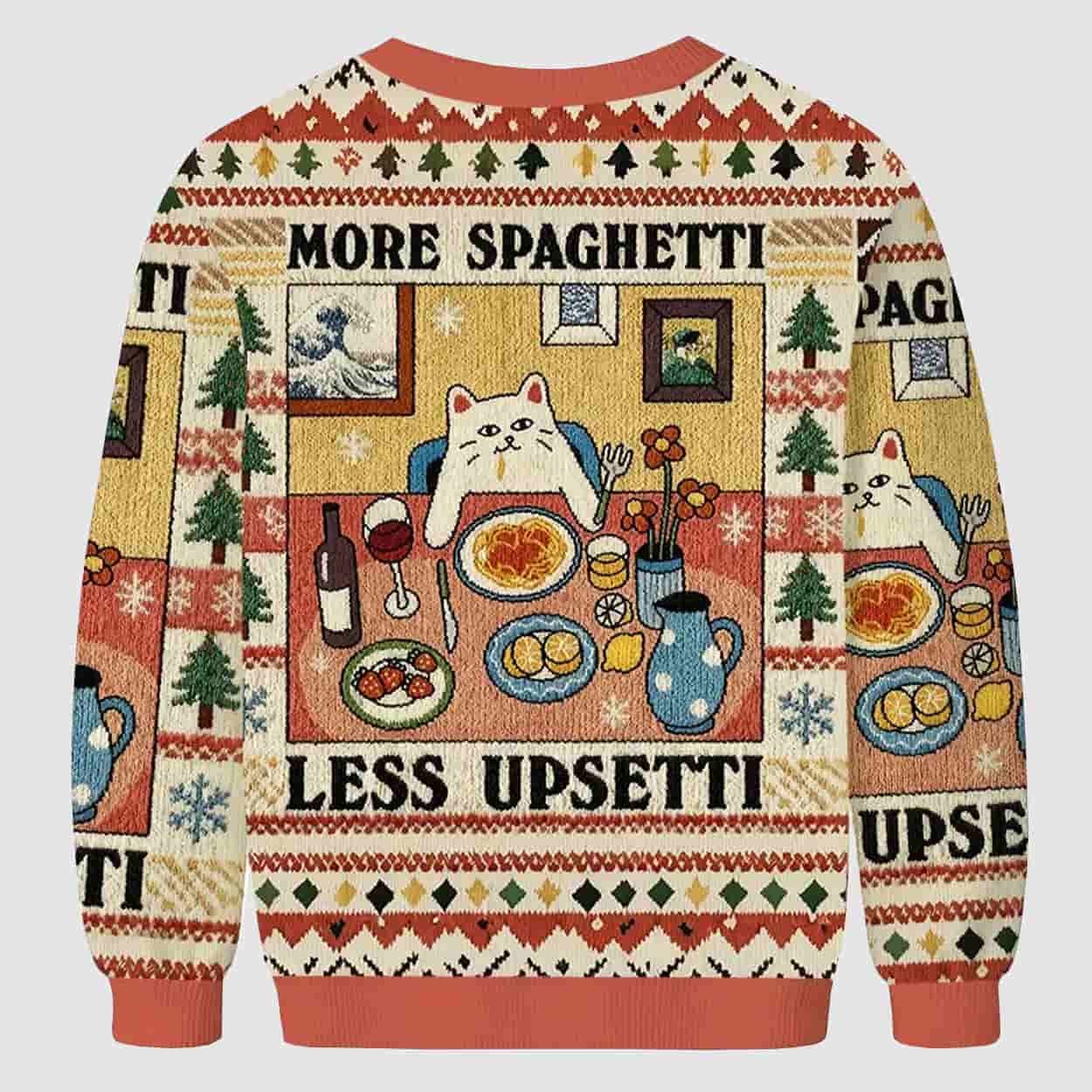 Cat More Spaghetti Less Upsetti Funny Ugly Christmas Sweater