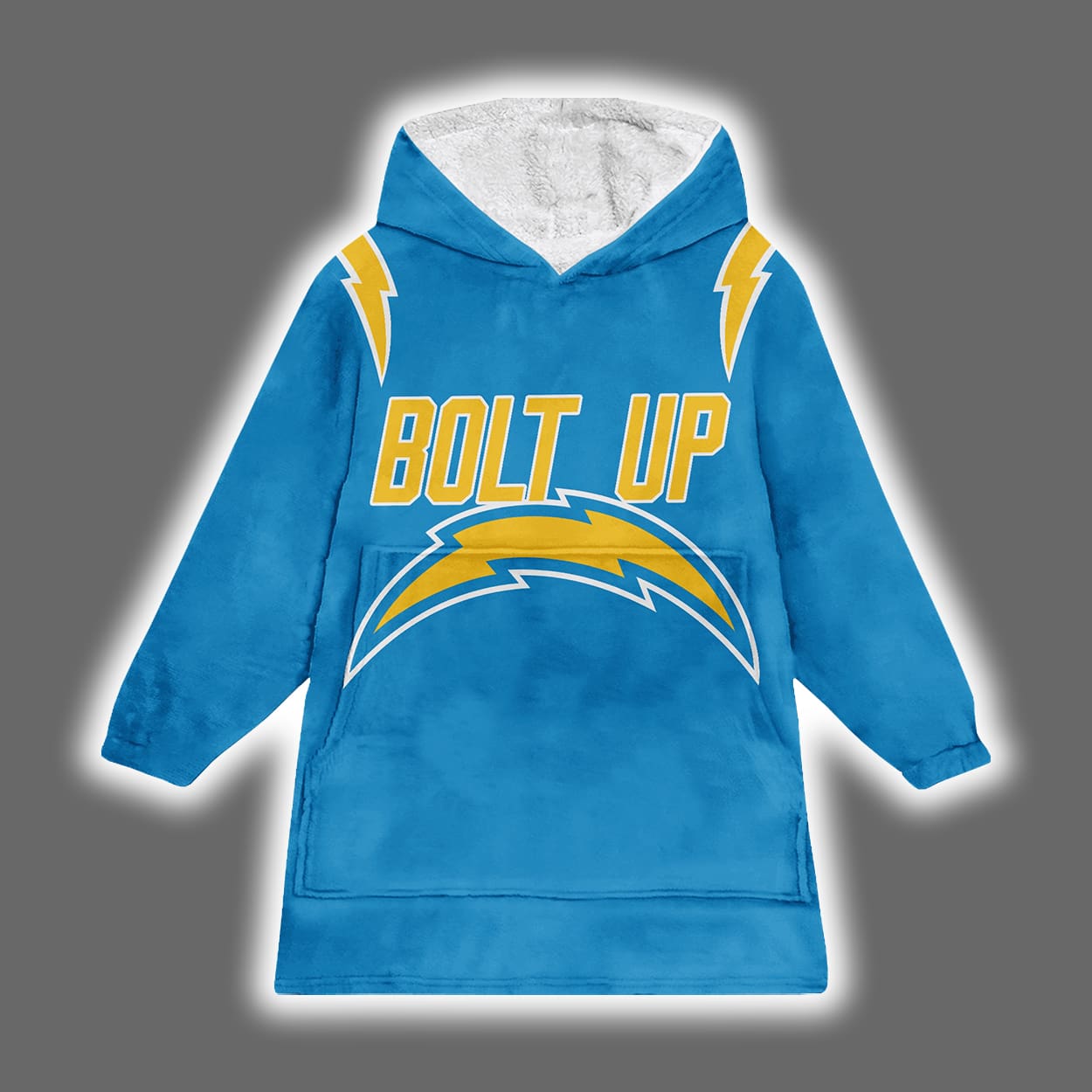 Electrify your fan gear with the Chargers Bolt Up Justin Herbert 10 Blanket Hoodie—an oversized, ultra-cozy tribute to LA’s lightning-fast quarterback. Bold, bright, and built for die-hard fans.