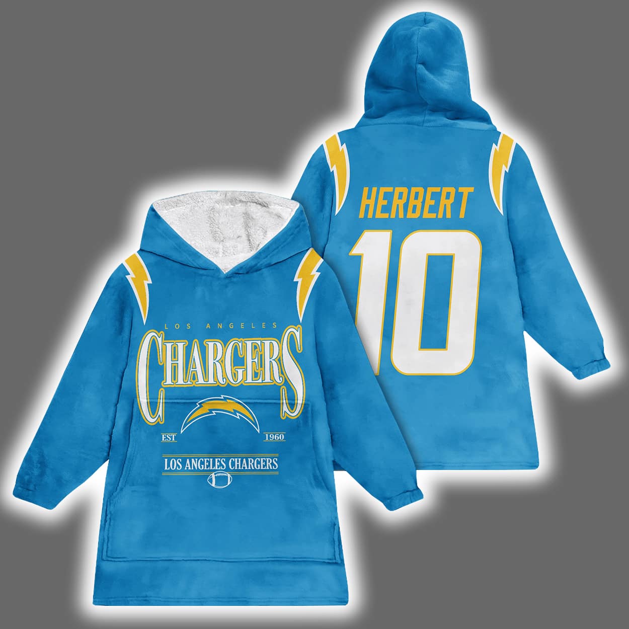 Chargers Est 1960 Justin Herbert 10 Unisex Blanket Hoodie