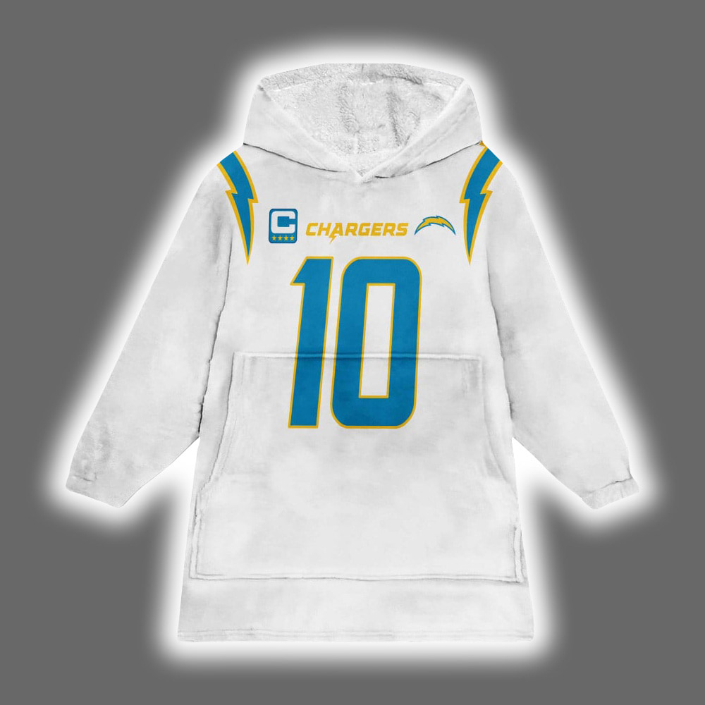 Chargers Justin Herbert 10 Football Blanket Hoodie