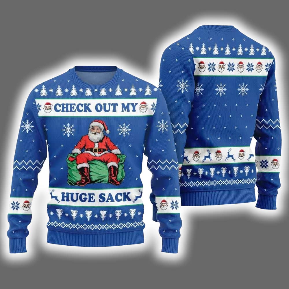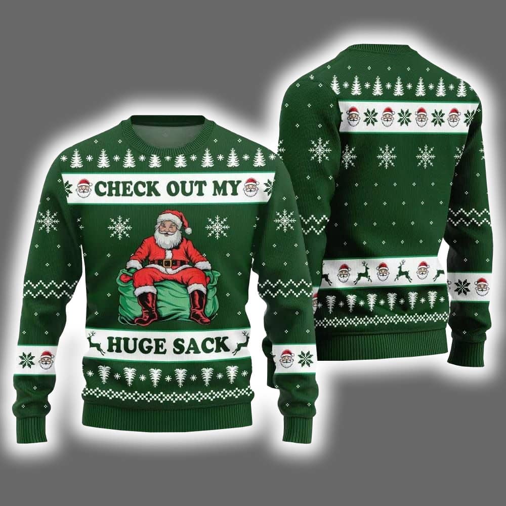 Check Out My Huge Sack Santa Ugly Christmas Sweater