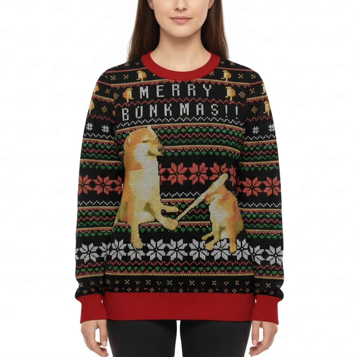 Merry Bunkmas!! The Cheems Doge Meme Ugly Christmas Sweater