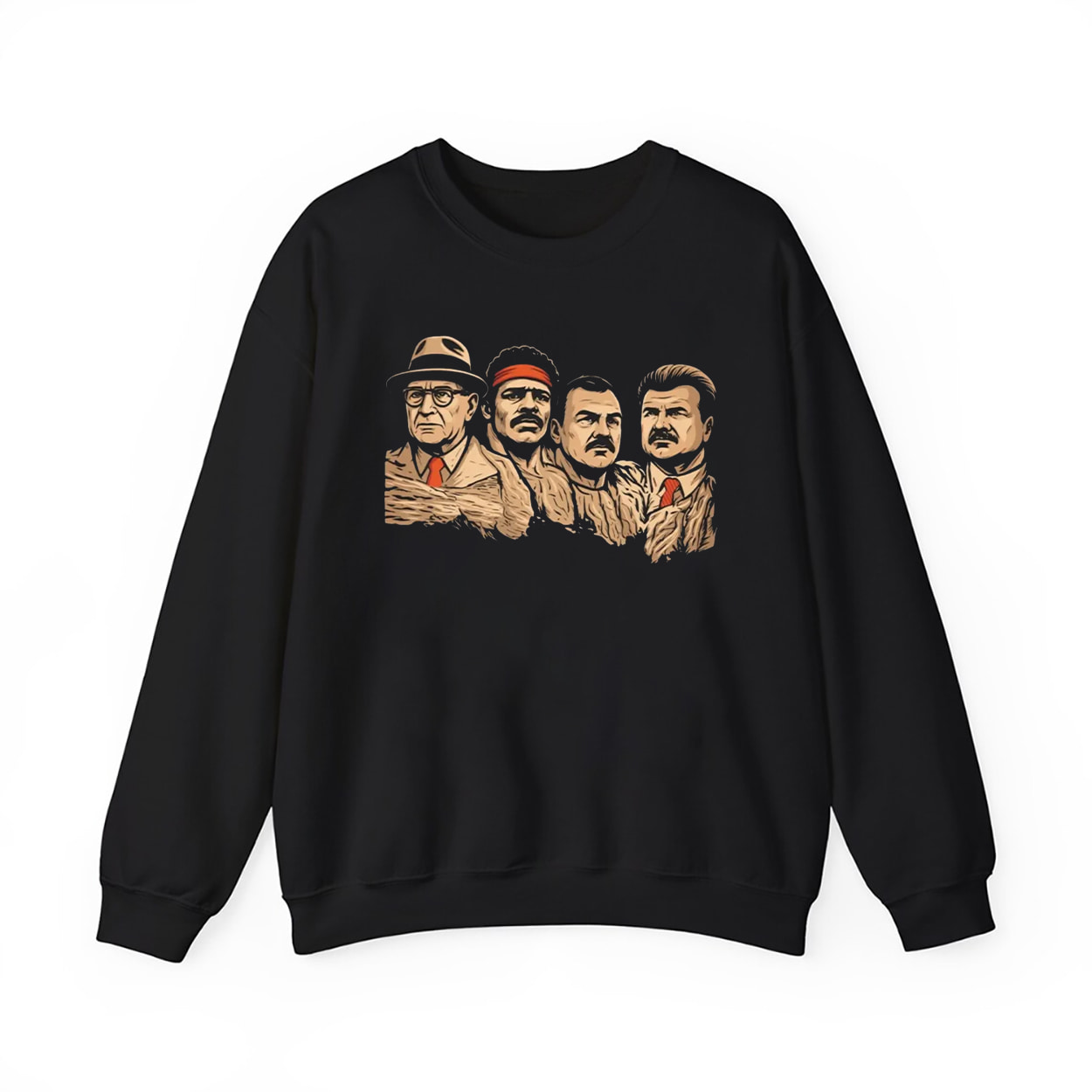 This shirt is a tribute to the titans of Chicago football, immortalized in a bold, vintage-style illustration across the chest. Four legendary figures stand shoulder to shoulder, each rendered in rich sepia tones with stylized flair—suits, ties, and unmistakable swagger. One sports a fedora and glasses, another a headband, while the rest exude classic charisma. It’s not just a shirt—it’s a mural of greatness, a wearable hall of fame that sparks conversation and admiration wherever you go.
