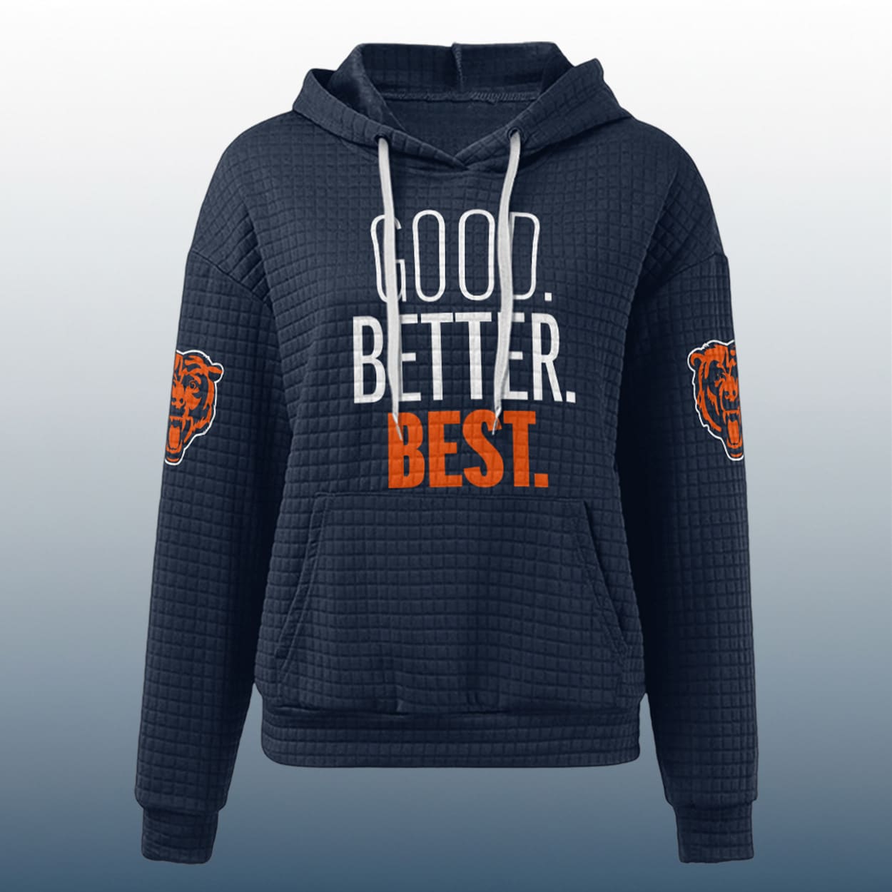 Ready to wear your ambition on your chest? The Chicago Good Better Best Waffle Hoodie is your go-to for bold comfort and Bears pride. Grab yours now and show the world what “BEST” looks like.