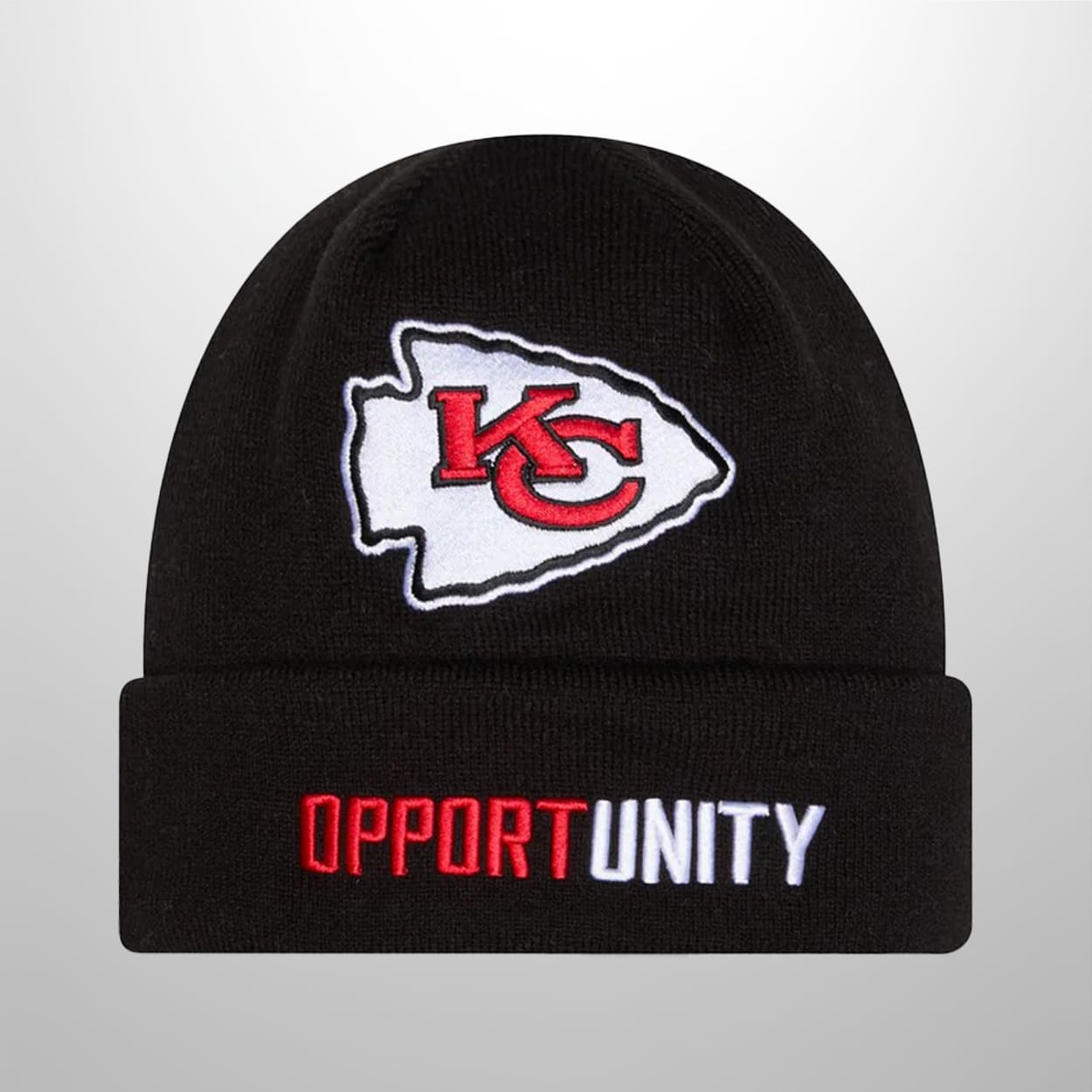 Gear up with purpose in the Chiefs 2025 Opportunity Inspire Change Beanie Hat. A sleek black hat featuring a clever design that unites team pride with a powerful message.