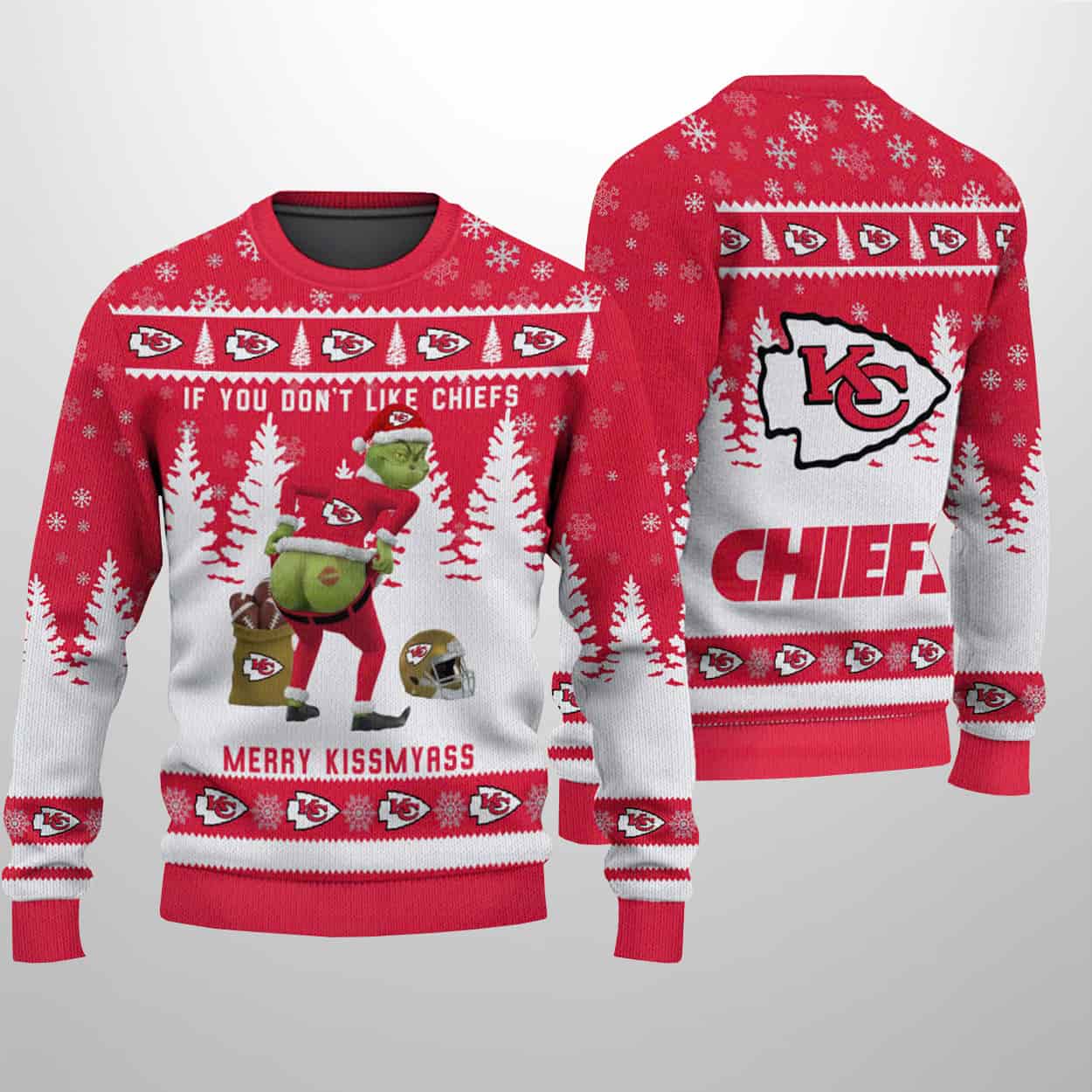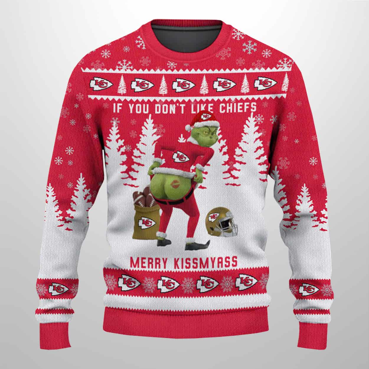 Grinch Meets Gridiron: The Chiefs Grnch Merry Kissmyass Ugly Christmas Sweater That Says It All