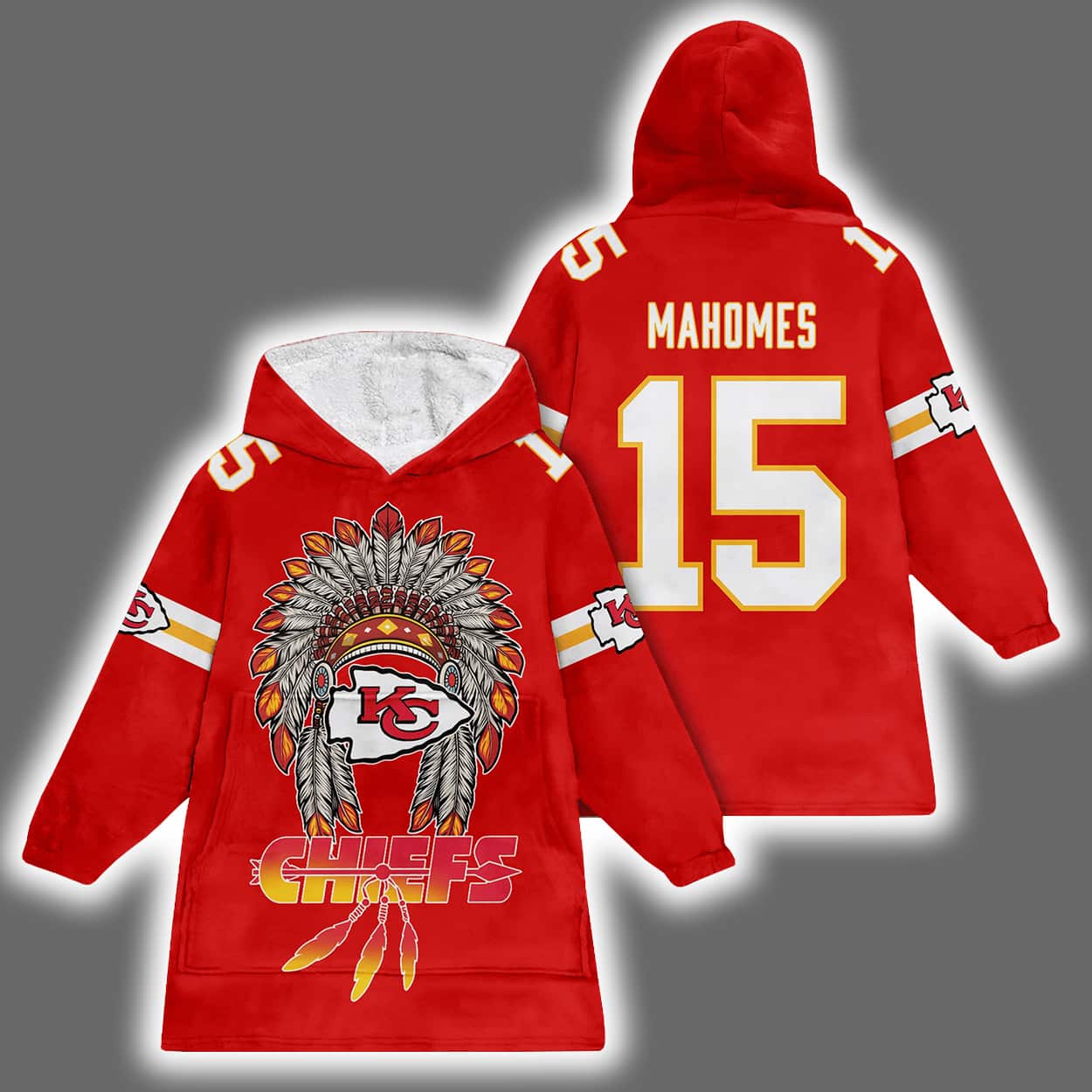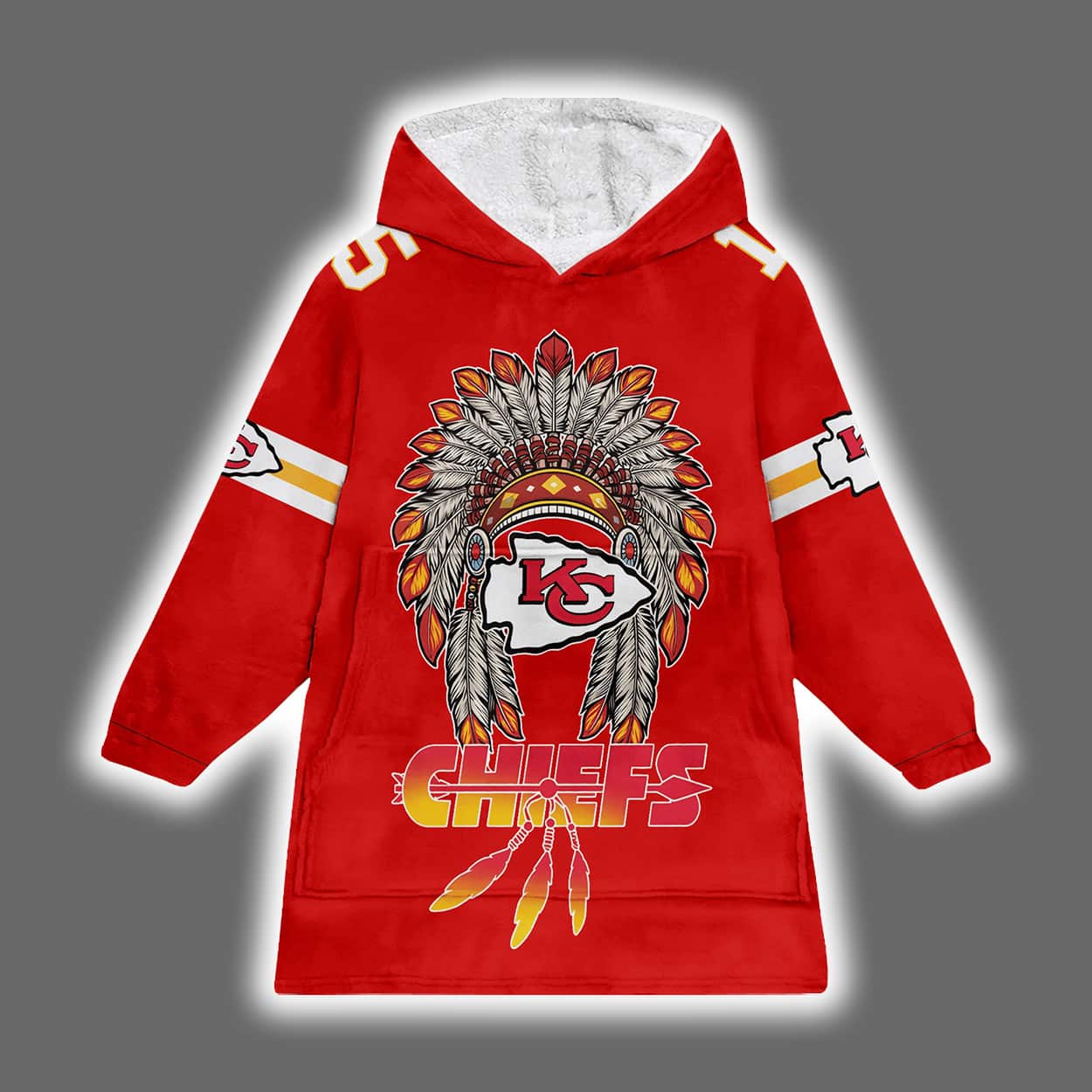 Headdress, Hype, and Heroics: The Chiefs Native American Mahomes 15 Unisex Blanket Hoodie That Turns Heads