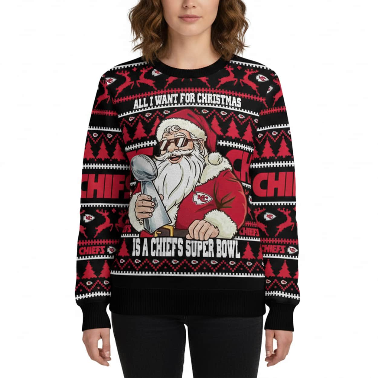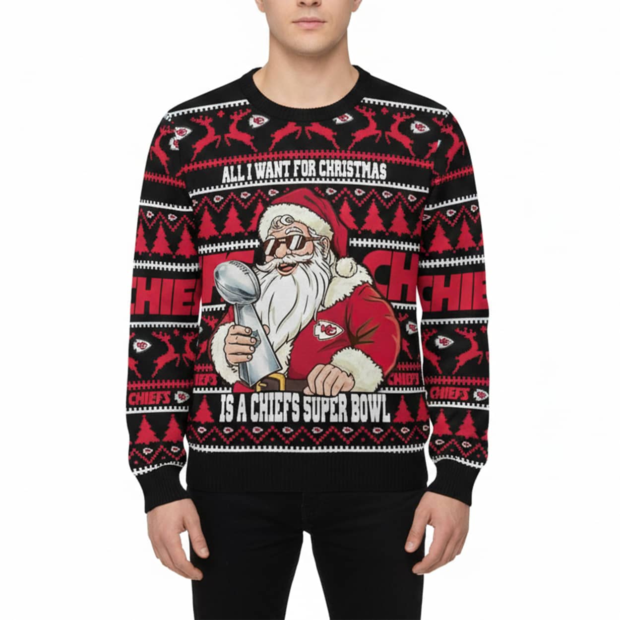Chiefs Santa All I Want For Christmas Is SB Ugly Christmas Sweater