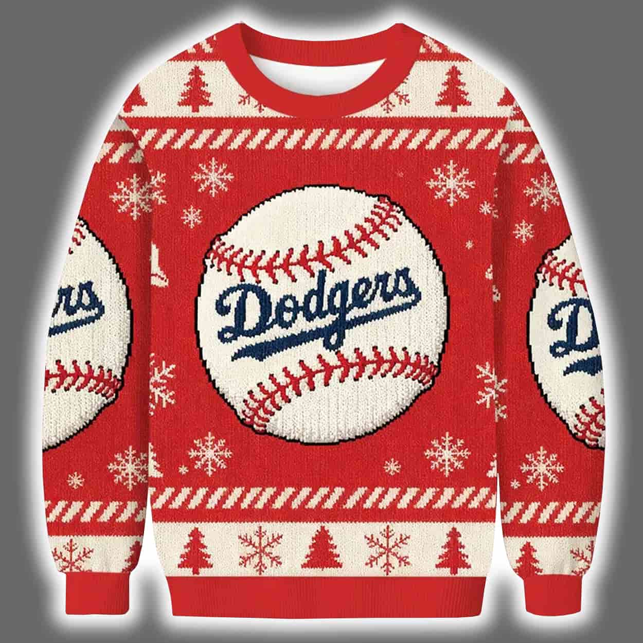 Swing into the Holidays: The Christmas 2025 LA Dodgers Baseball Red Ugly Sweater