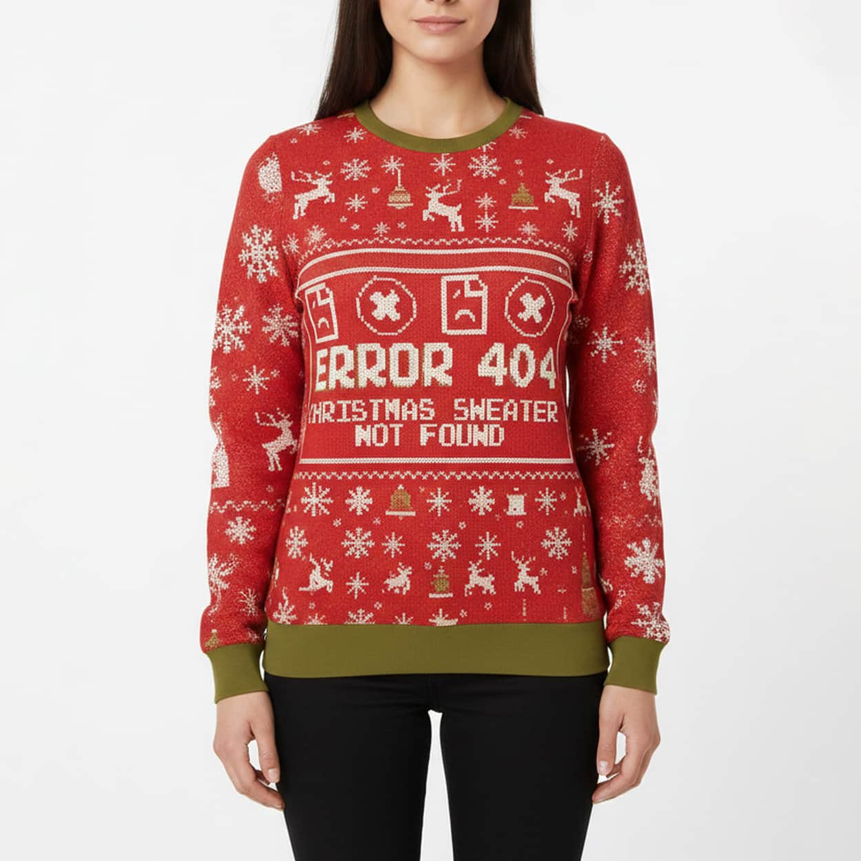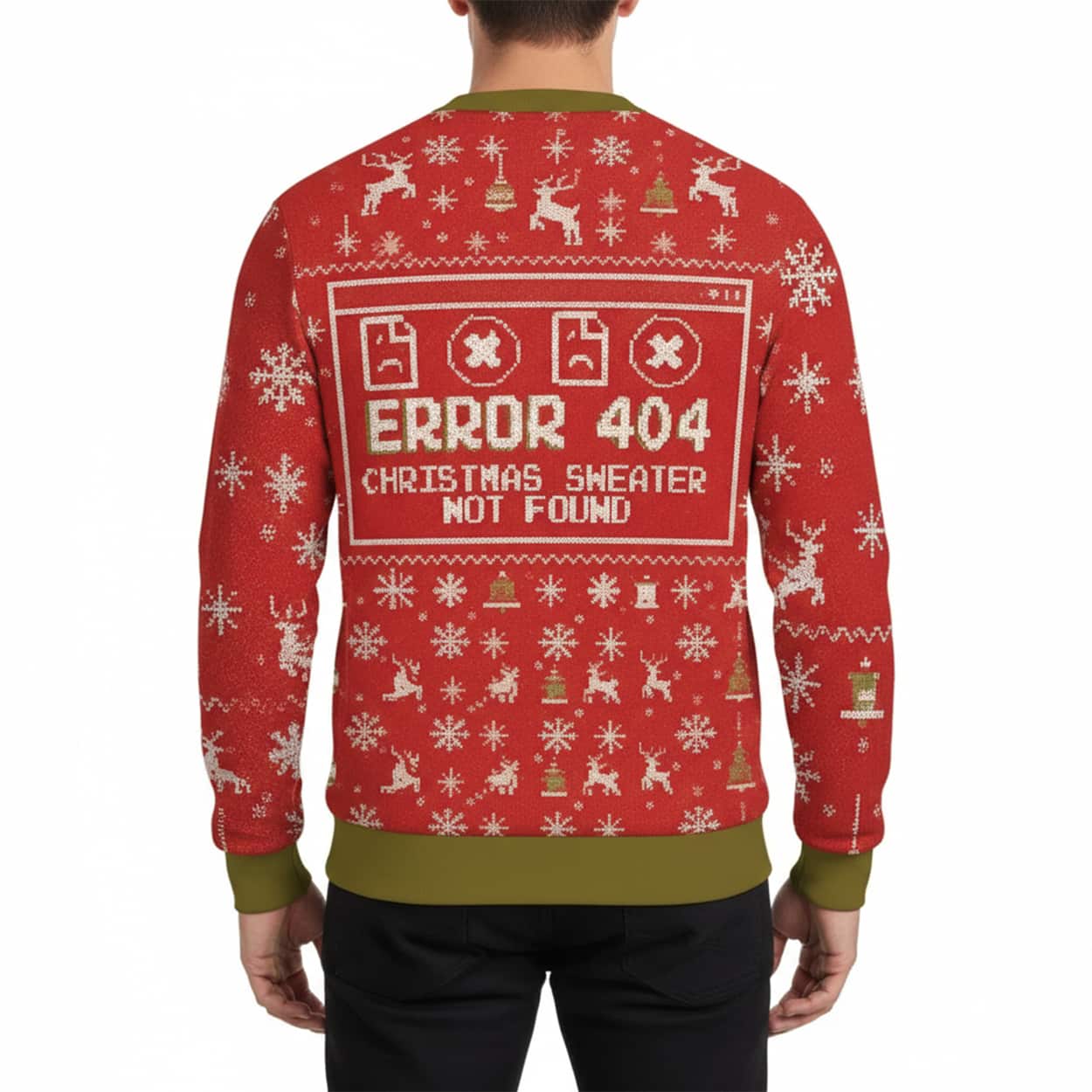 Festive Fail: The Christmas Error 404 Not Found Ugly Sweater Not Found” Look