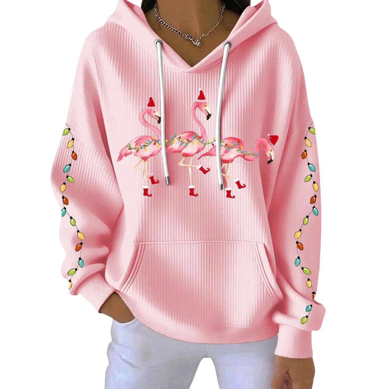 Ready to ruffle some feathers this holiday? Slip into the Christmas Flamingo Print Casual Pit Striped Hoodie and let your festive spirit fly. Add it to your cart now and make this season your most stylish one yet!