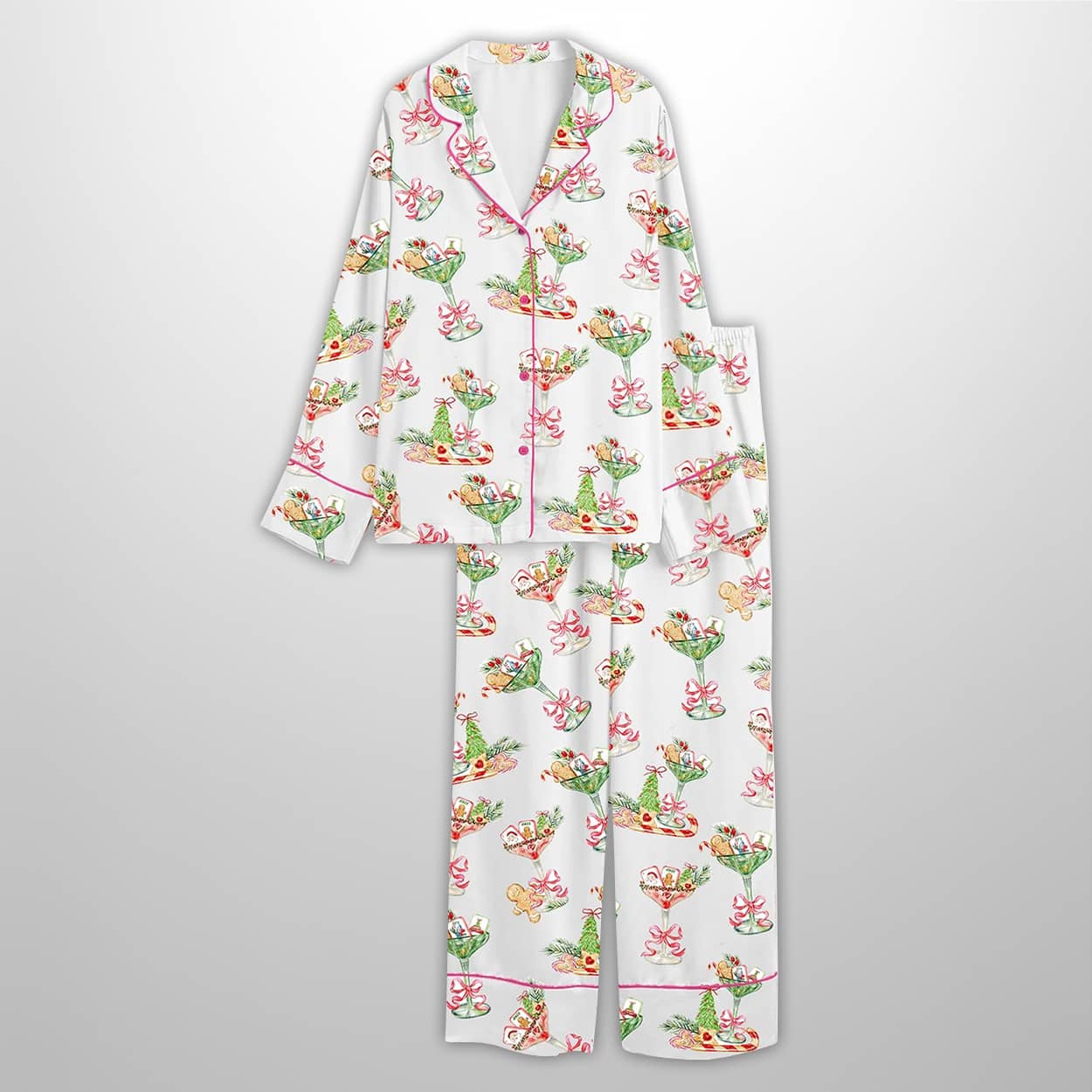 Celebrate the season in style with the Christmas Mahjong Watercolor Cocktails Satin Pajama Set—where festive flair meets artistic charm. A joyful blend of holiday cheer and playful sophistication.