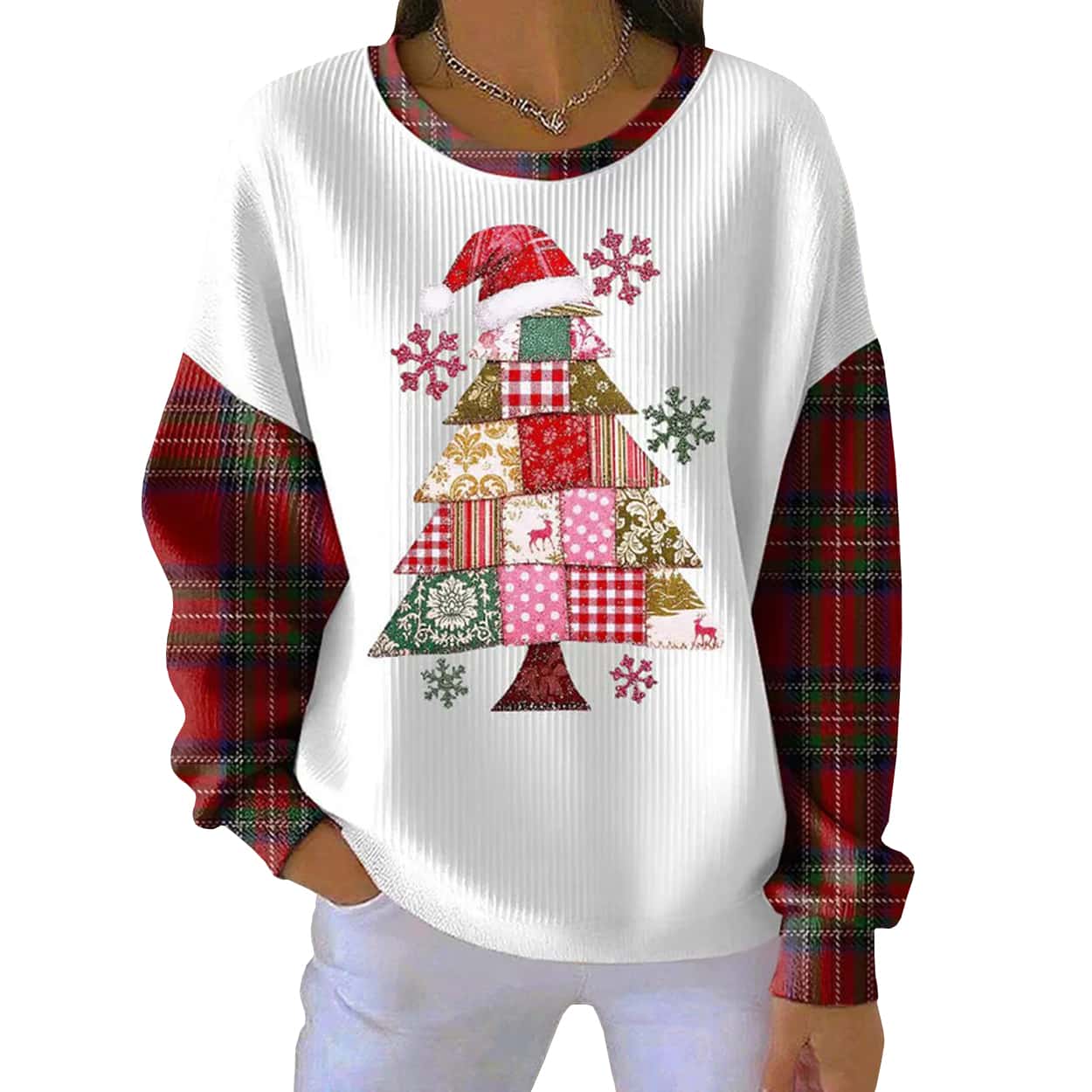 Celebrate the season with patchwork charm! The Christmas Tree Print Ribbed Round-Neck Sweatshirt brings festive flair and cozy style to bold holiday wardrobes.