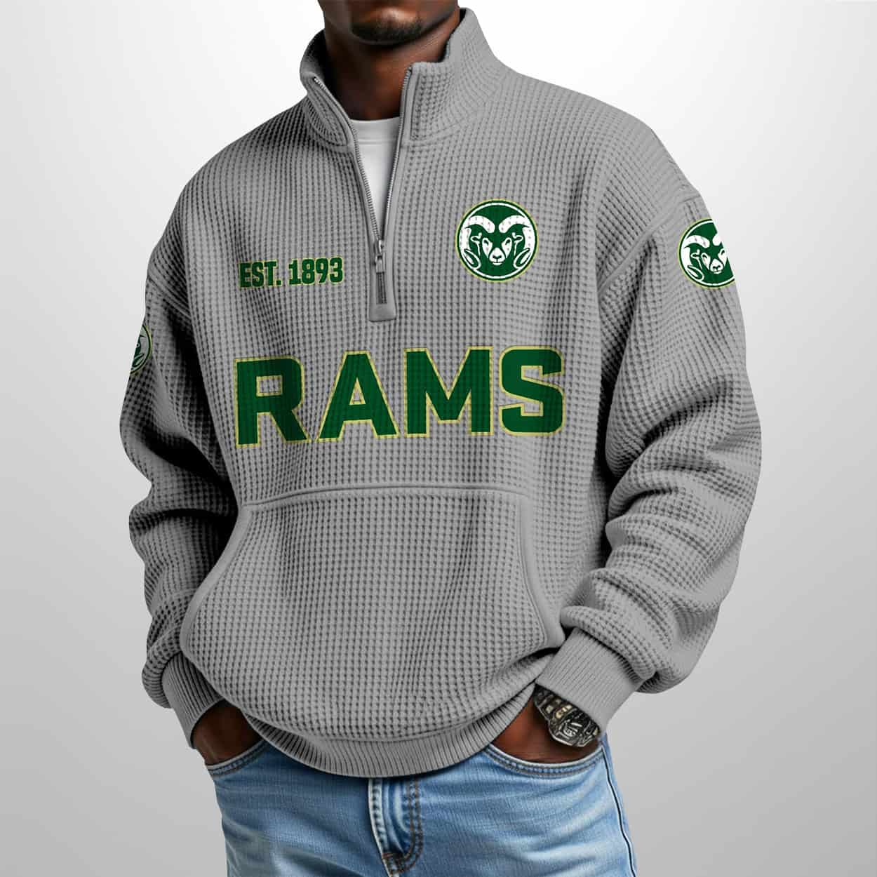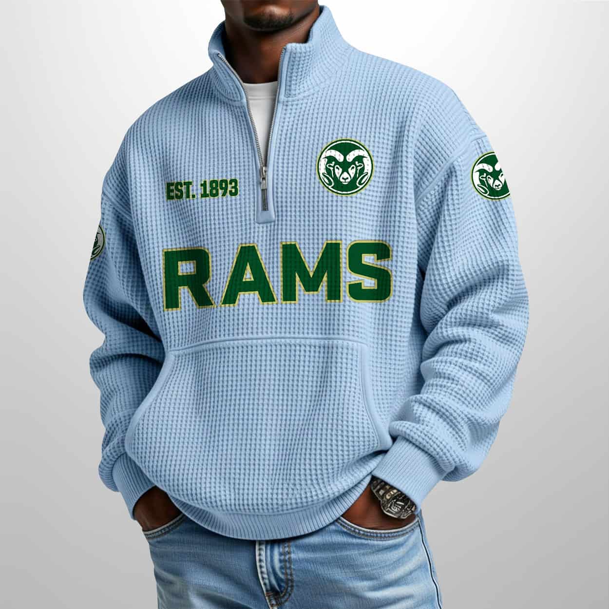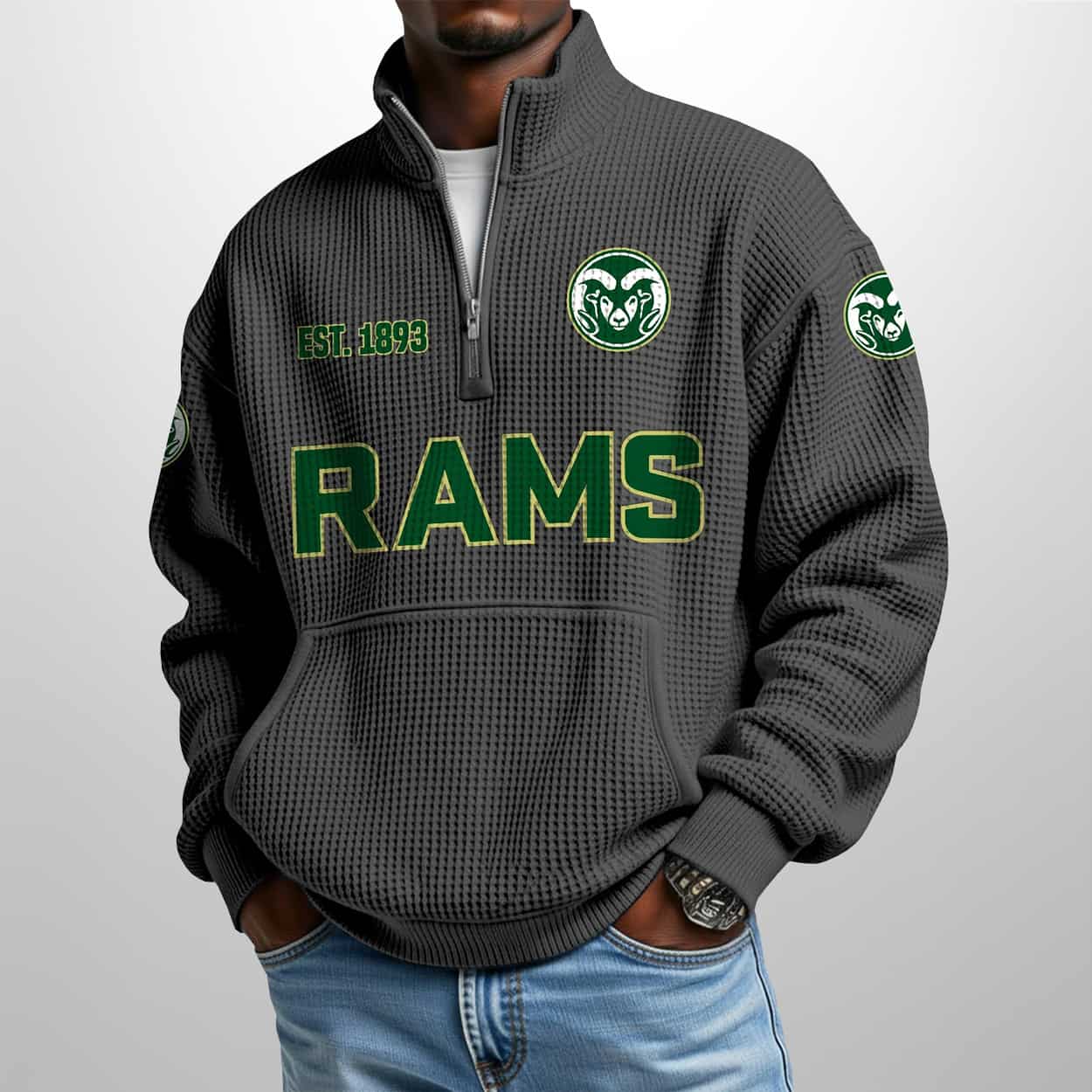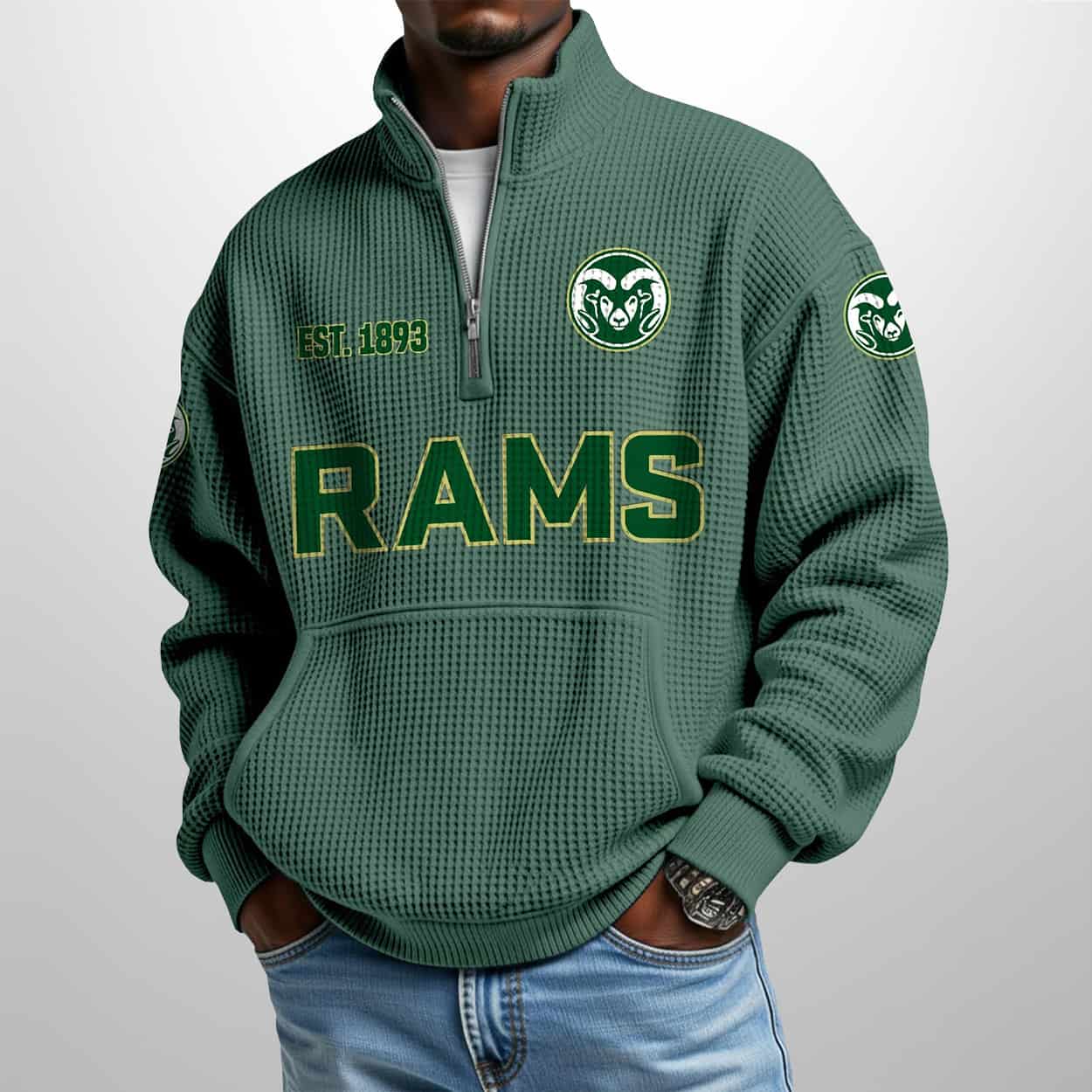Green Means Grit: The Colorado State Est 1893 Waffle Stand Collar Half Zip Sweatshirt That Rams Through Ordinary
