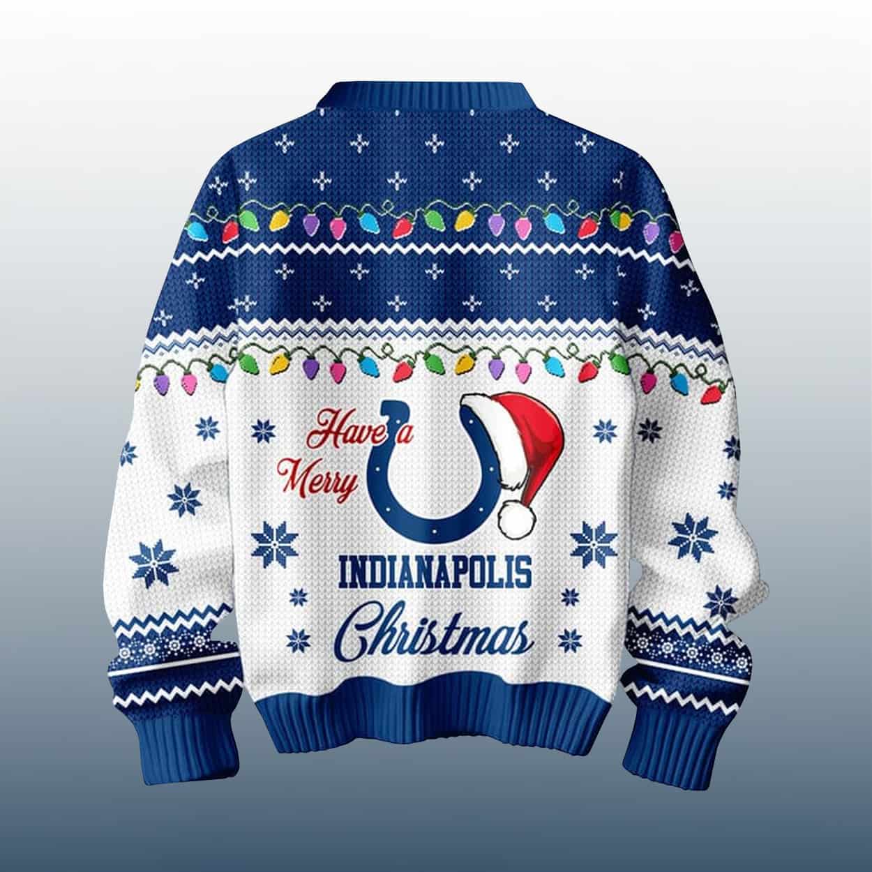 This sweater is more than just a cozy layer—it’s a celebration of loyalty, laughter, and love for the game. Designed for fans who aren’t afraid to show off their festive side, it blends classic holiday motifs with unmistakable Colts pride. Whether you’re hosting a party or cheering from the couch, this sweater turns heads and starts conversations.