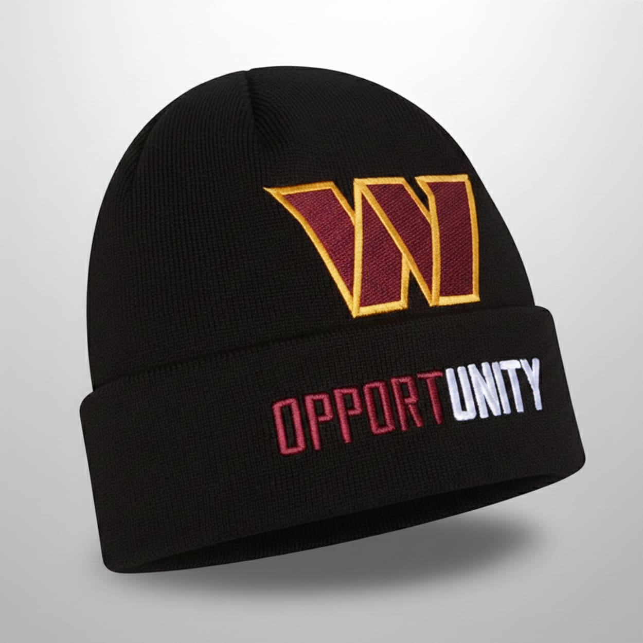 This isn’t just a hat—it’s a philosophy. The design cleverly emphasizes “UNITY” within “OPPORTUNITY,” reminding us that real change begins when we come together. Whether you’re rallying at a game or making moves in your community, this beanie lets you wear your values with pride. The stylized “W” nods to the Washington Commanders, blending team spirit with a message that transcends sports.