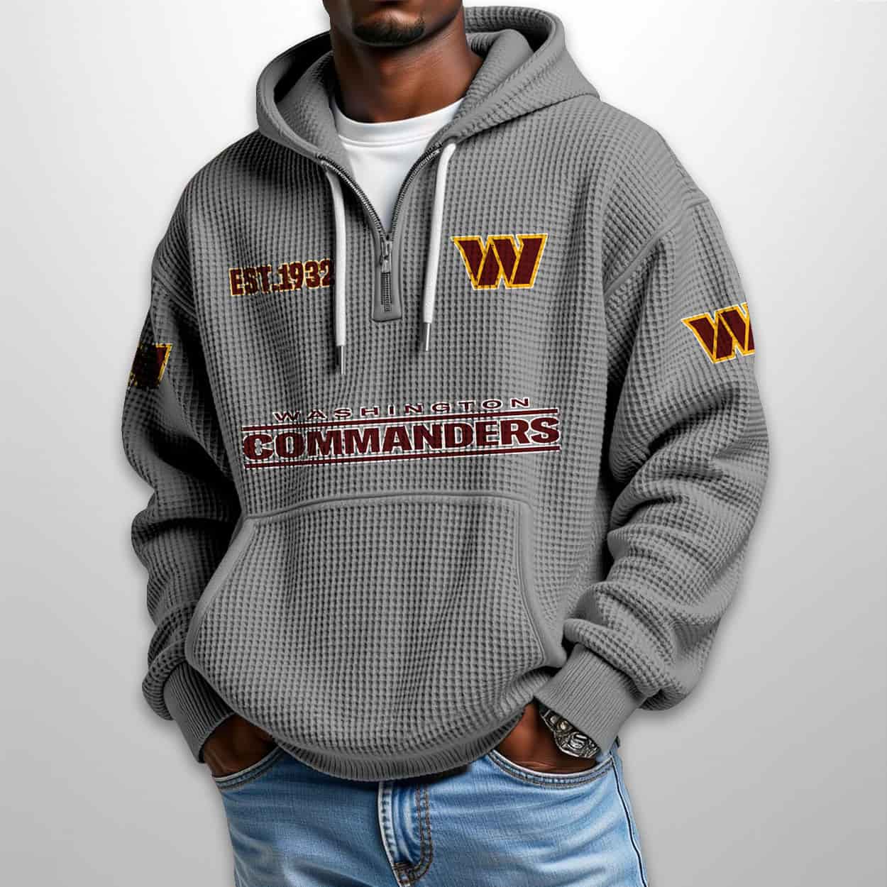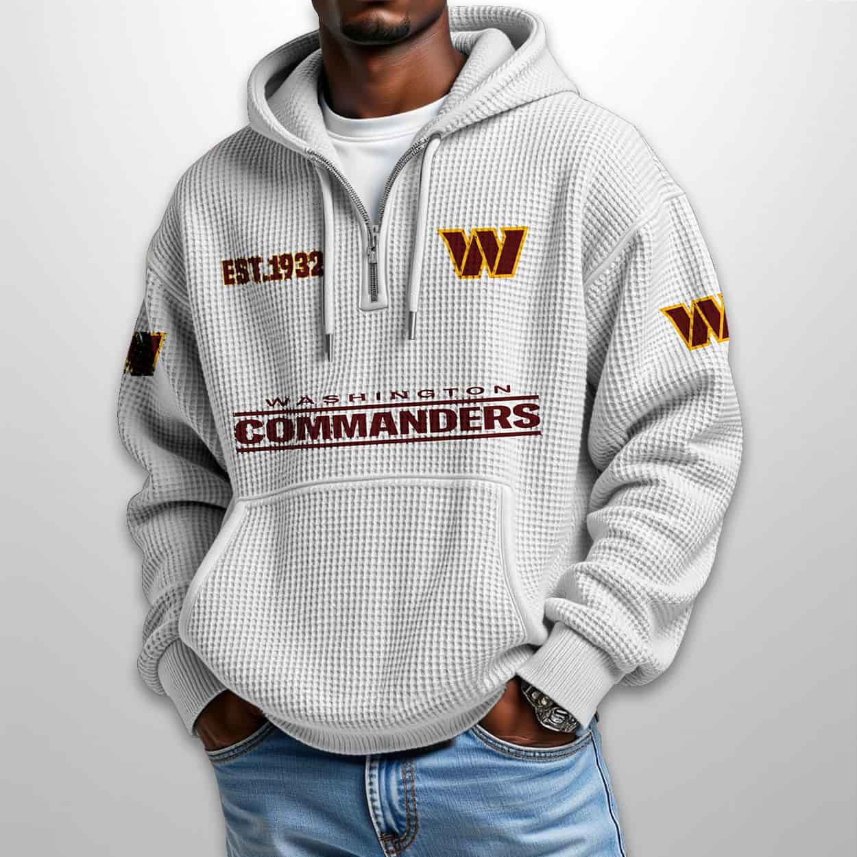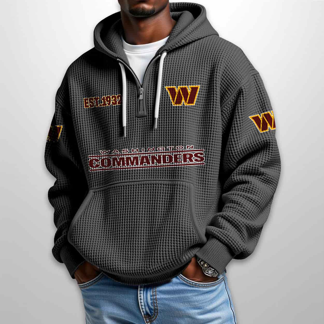 Command Your Style: The Commanders Est 1932 Half Zip Waffle Hoodie That Huddles Up History
