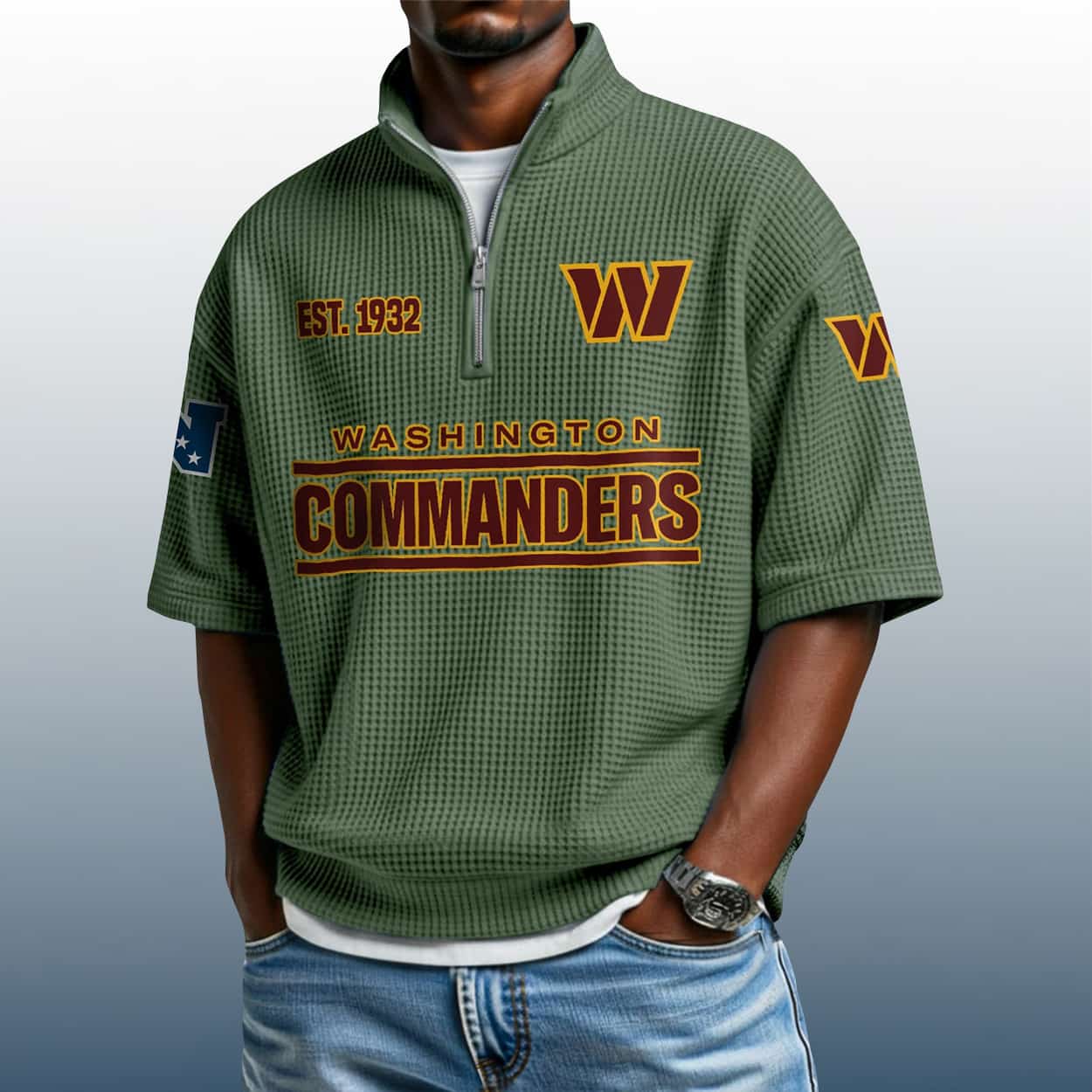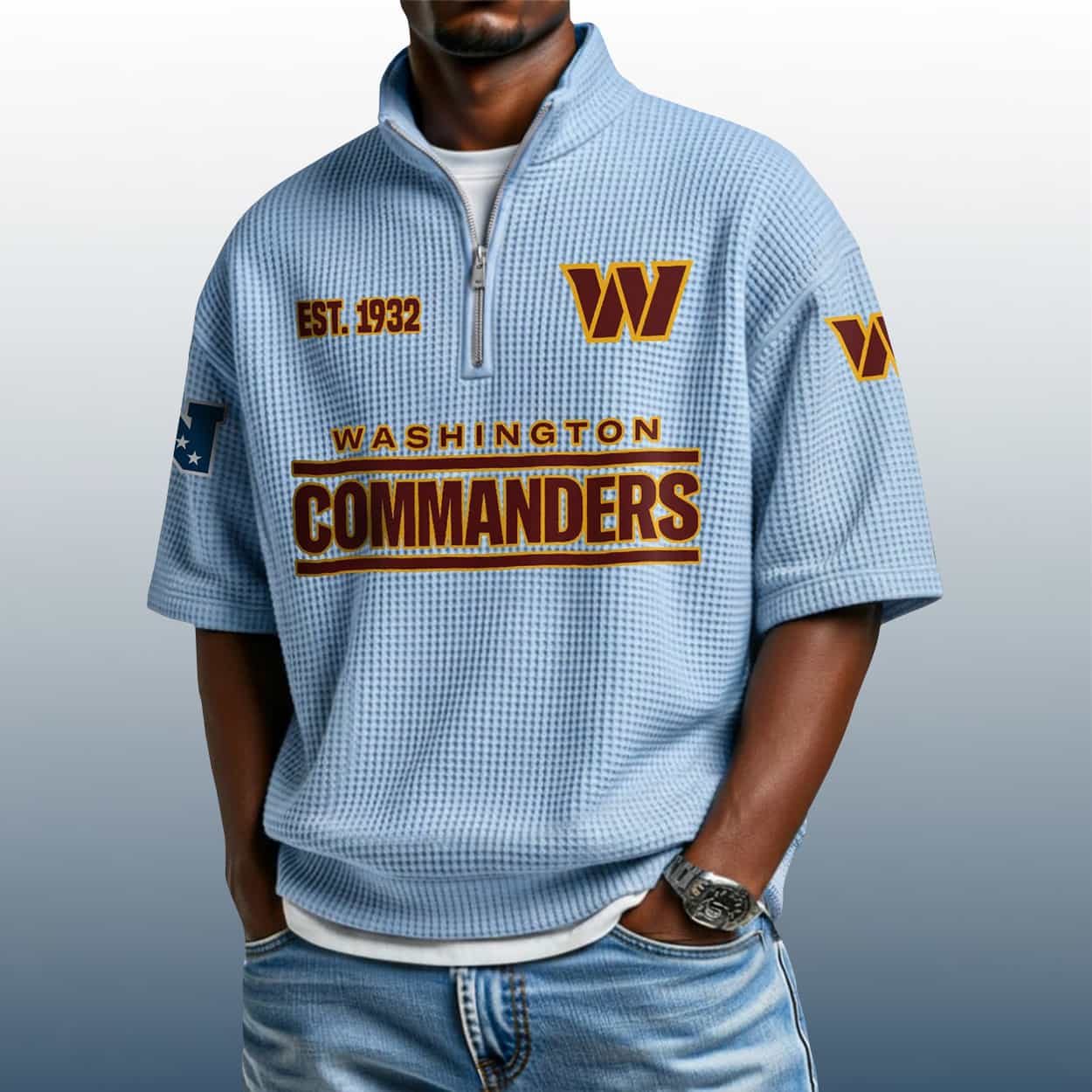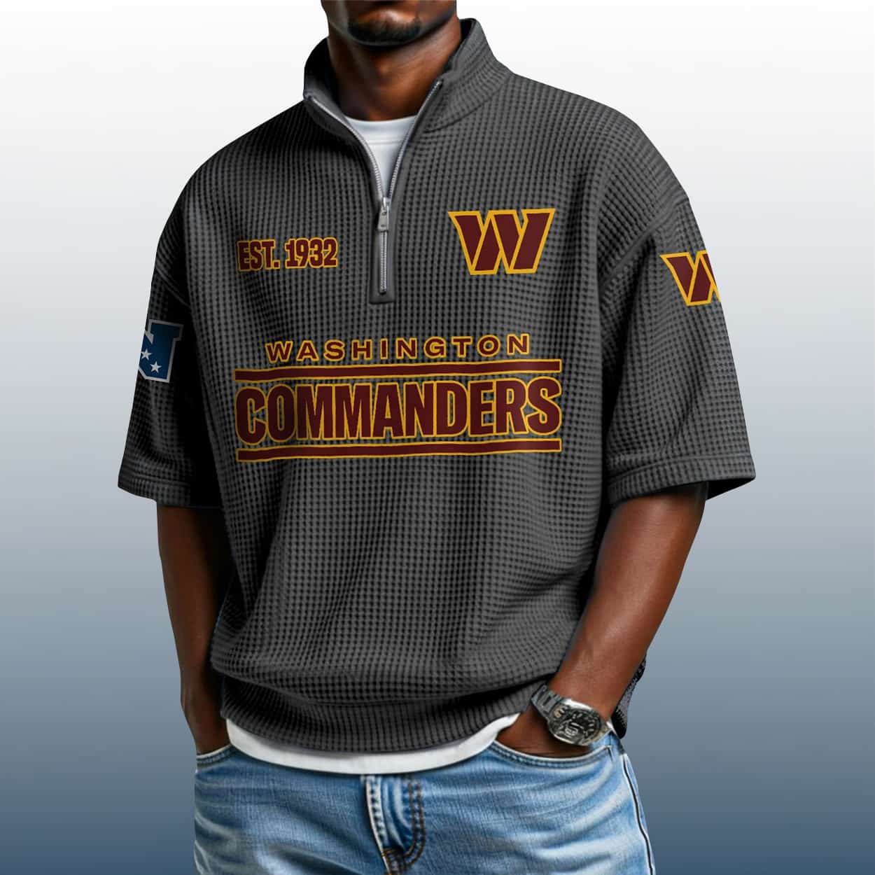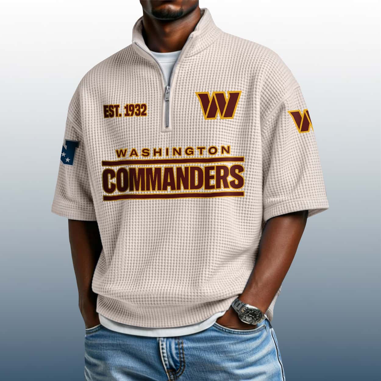 Ready to rep your team with style and swagger? Zip into the Commanders Est 1932 Waffle Stand Collar Half Zip Polo Shirt and make every day feel like a victory parade.