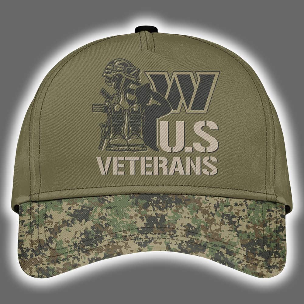 This collection’s design is a thoughtful fusion of athletic style and military reverence. The camouflage pattern isn’t just a trend; it’s a representation of service, dedication, and the unbreakable spirit of our armed forces. The “W” logo boldly integrated into the U.S. Veterans graphic on the back of the hoodie and the front of the cap and joggers signifies the powerful connection between the Commanders and their veteran community. It’s a playful yet powerful way to say that the Commanders stand with those who have served. The soldier graphic, a stylized depiction of an armed service member, is a tribute to the quiet strength and unwavering resolve of our veterans. It’s an invitation to wear your patriotism and team loyalty on your sleeve, celebrating both your love for the game and your respect for our heroes.